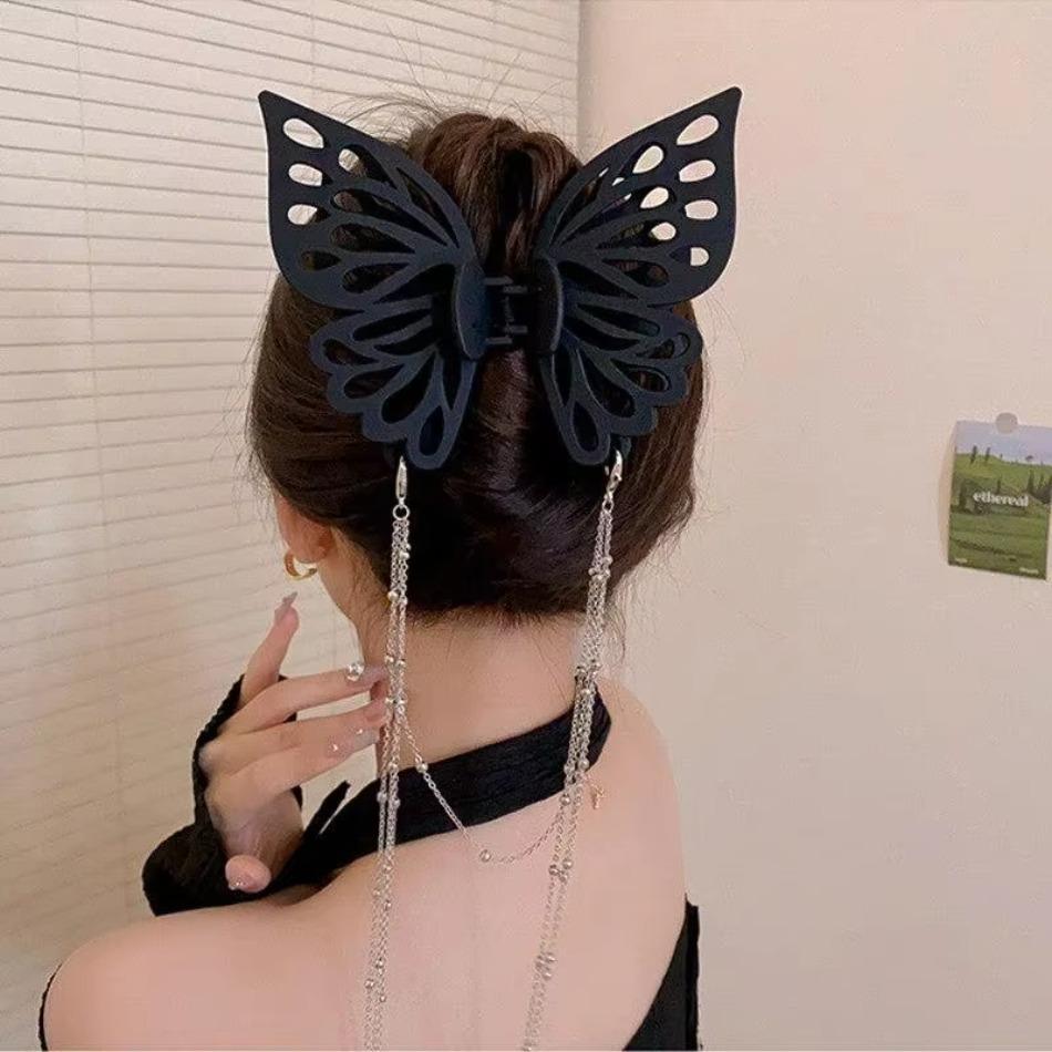 Заколка-краб с кисточкой-бабочкой, простая однотонная, для хвостика, для девочек, женская, модная, женская, большого размера, головной убор, аксессуары для волос