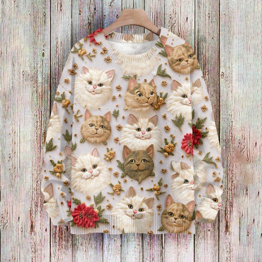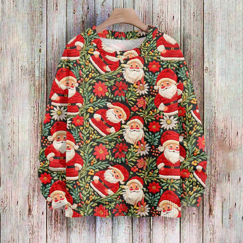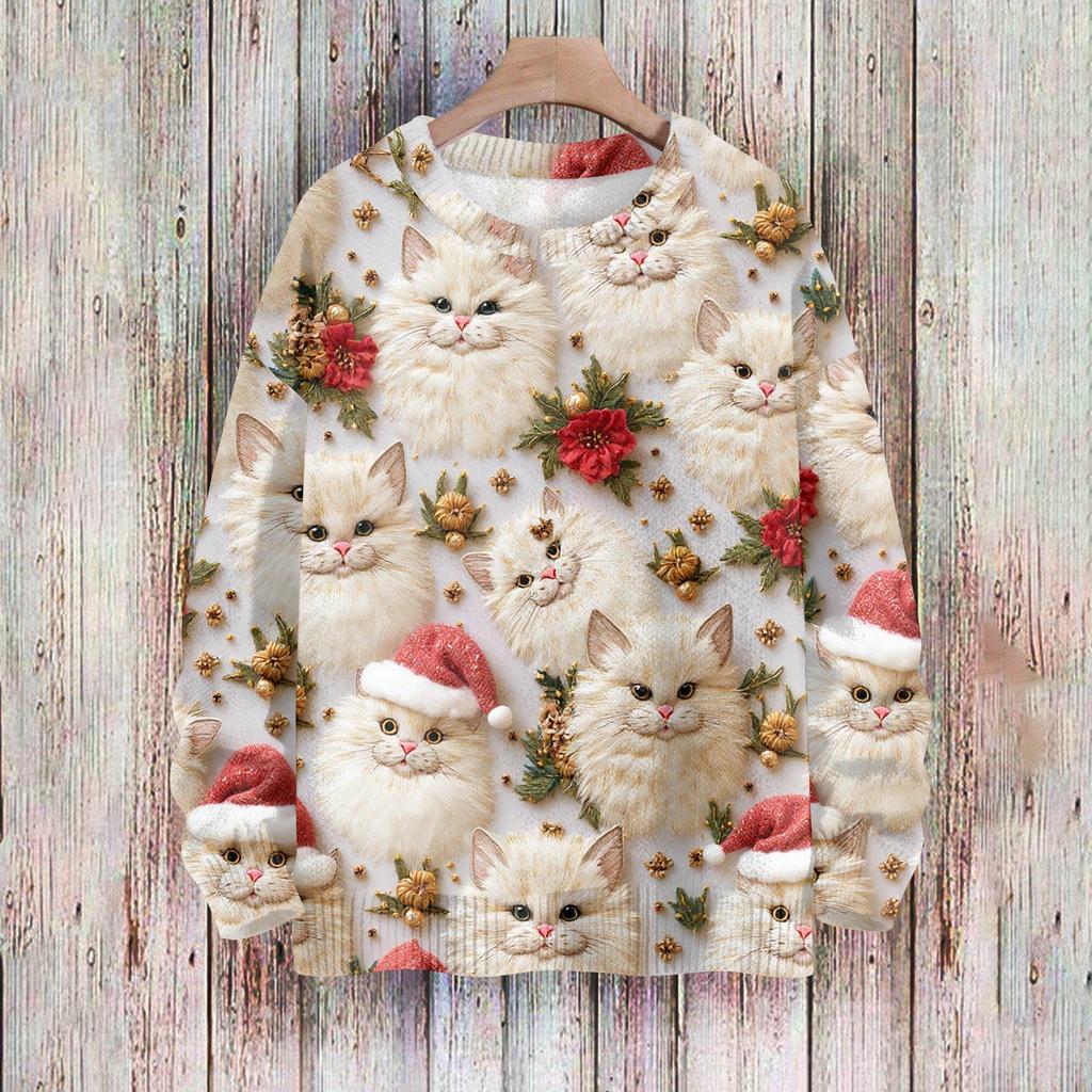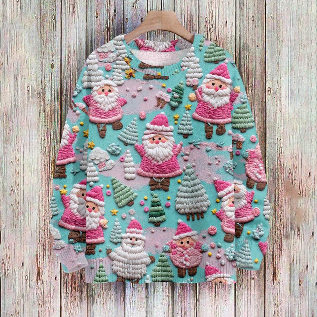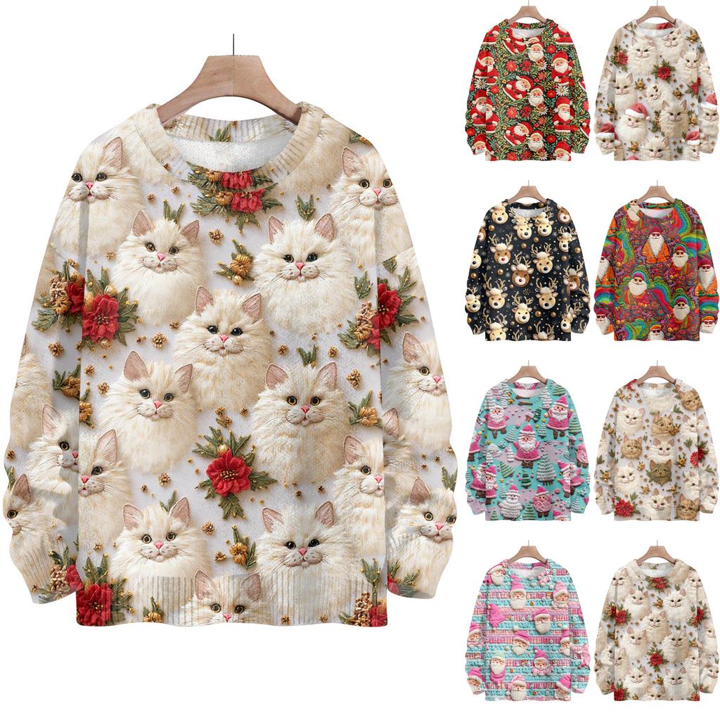 Рождественские толстовки для женщин Вязаный свитер Милая рубашка Осенний свитер с круглым вырезом Топы