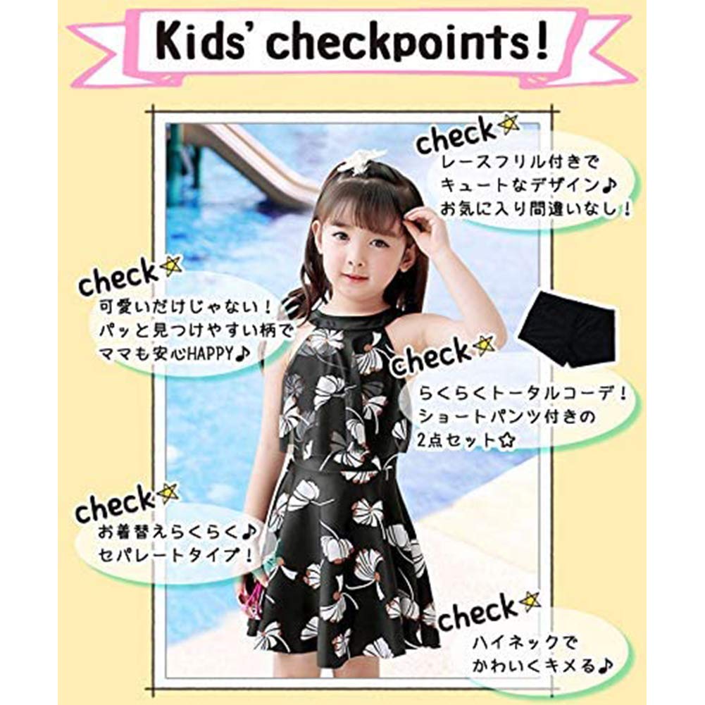 Комплект NICEYY для школы с кружевом и размерами Детский купальник, Комплект из двух частей для девочек, Слитный шорты с высоким горлом, Рюши, 120-160см (Япония, Рост, 150 см, Белый)