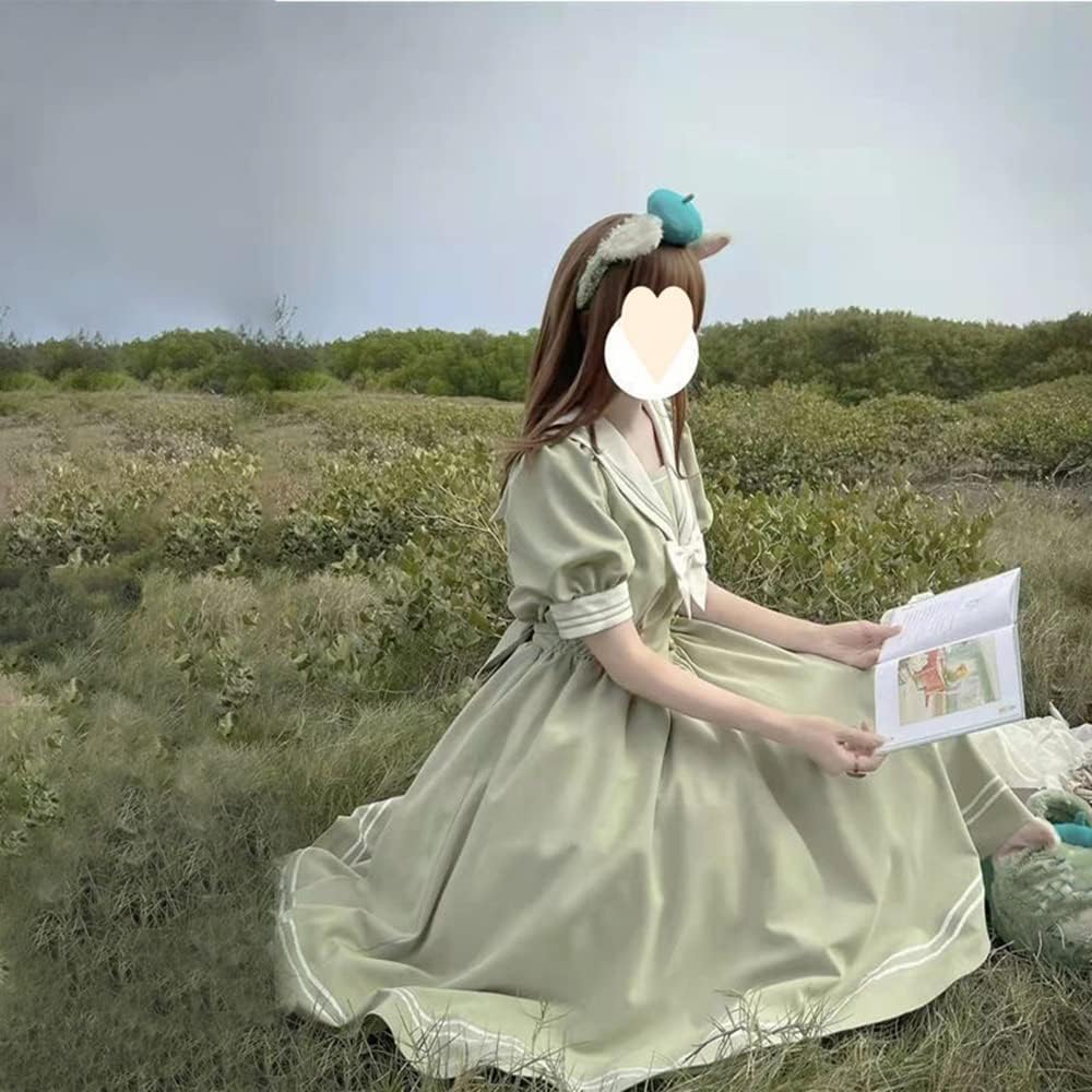 Платье в стиле мори-гёрл, матросская форма, короткое, конфетное, колледж, с коротким рукавом, матросский воротник, лолита-мода, женское платье, рукав, девушка, стиль, А-силуэт, лето, платье, воротник,