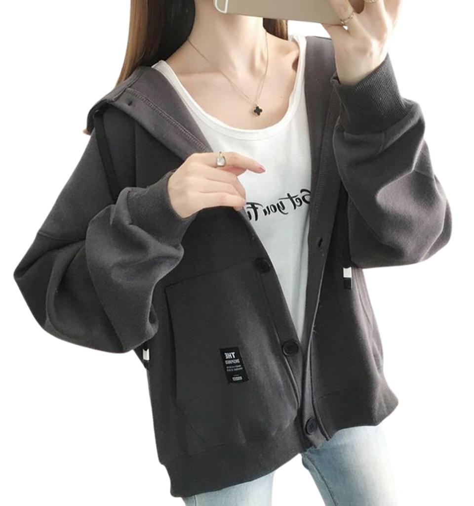 SECOND ROOTS Легкое худи с капюшоном на темных пуговицах, серое, XL, 5S-R04