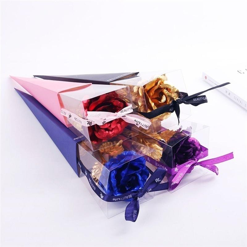 1 шт. Поп-подарки на День святого Валентина, золотая фольга, цветок розы, ручная работа, окунутый в длинный стебель, искусственный цветок, прямая поставка