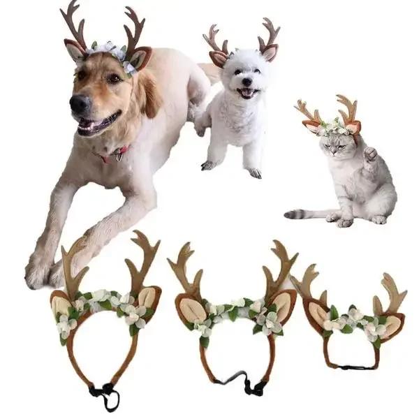 2023 Новый рождественский аксессуар для собак и кошек, повязка на голову в виде рогов, рождественское украшение для угла, повязка на голову для рождественского питомца