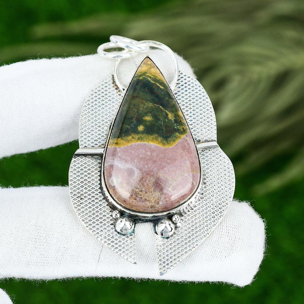 Серебро 925 пробы Груша Натуральный Океанический Яшма Безель Юбилей Мама Модный Новый Подвеска