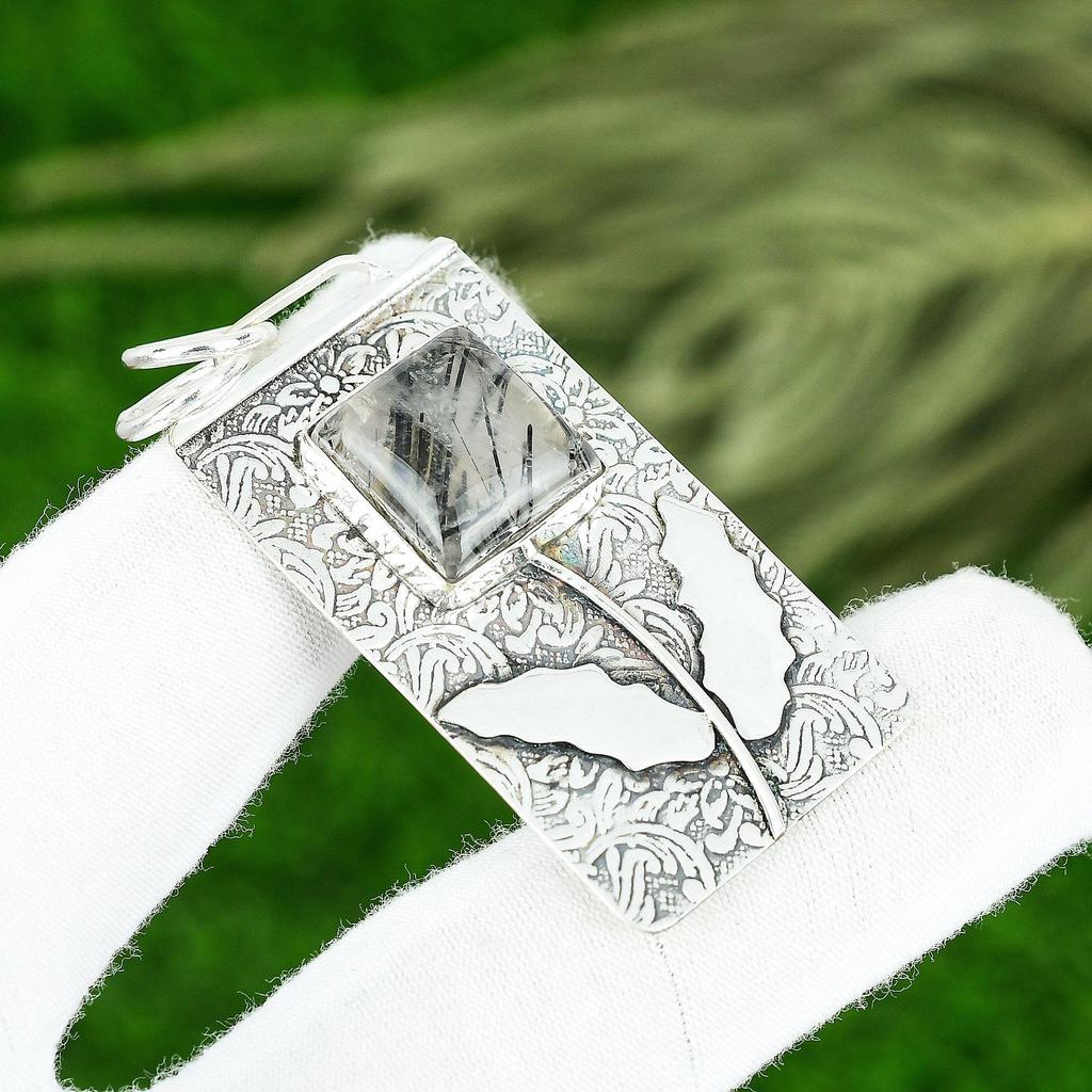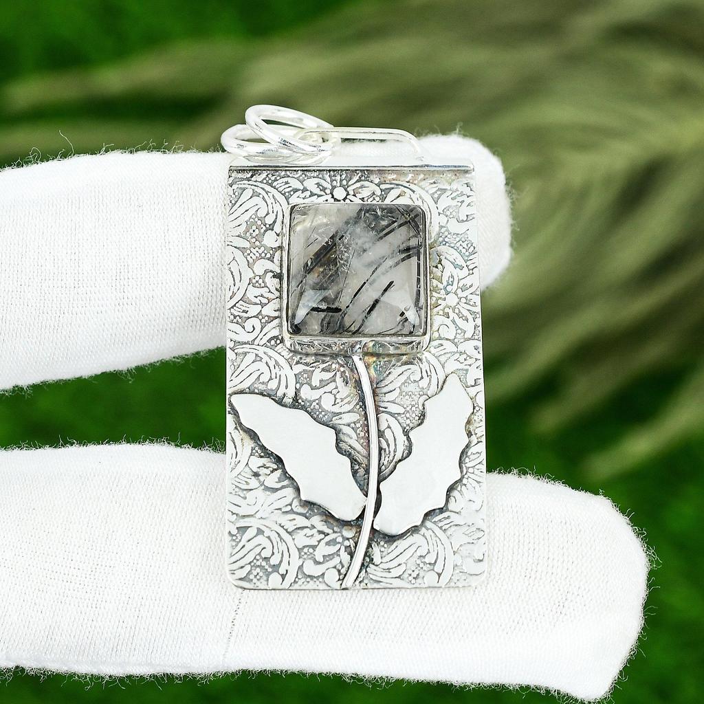 Friendship Day Deal Natural Black Rutile Sterling Silver Mother Wedding Pendant