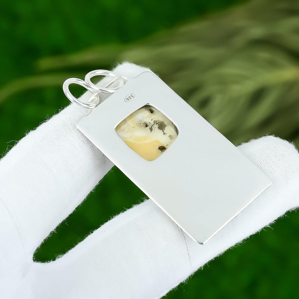 Friendship Day Sale 925 Sterling Silver Cushion Yellow Lace Agate Stone Pendant