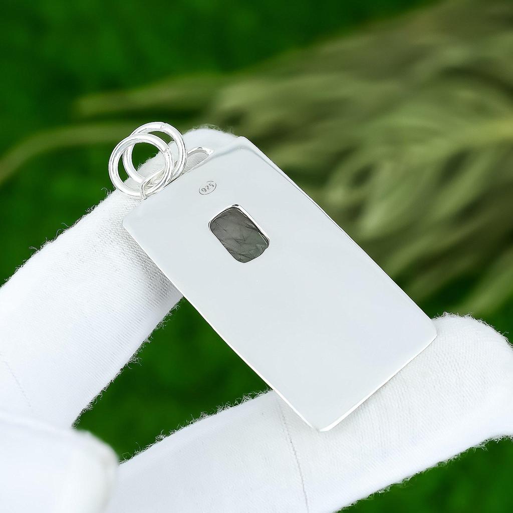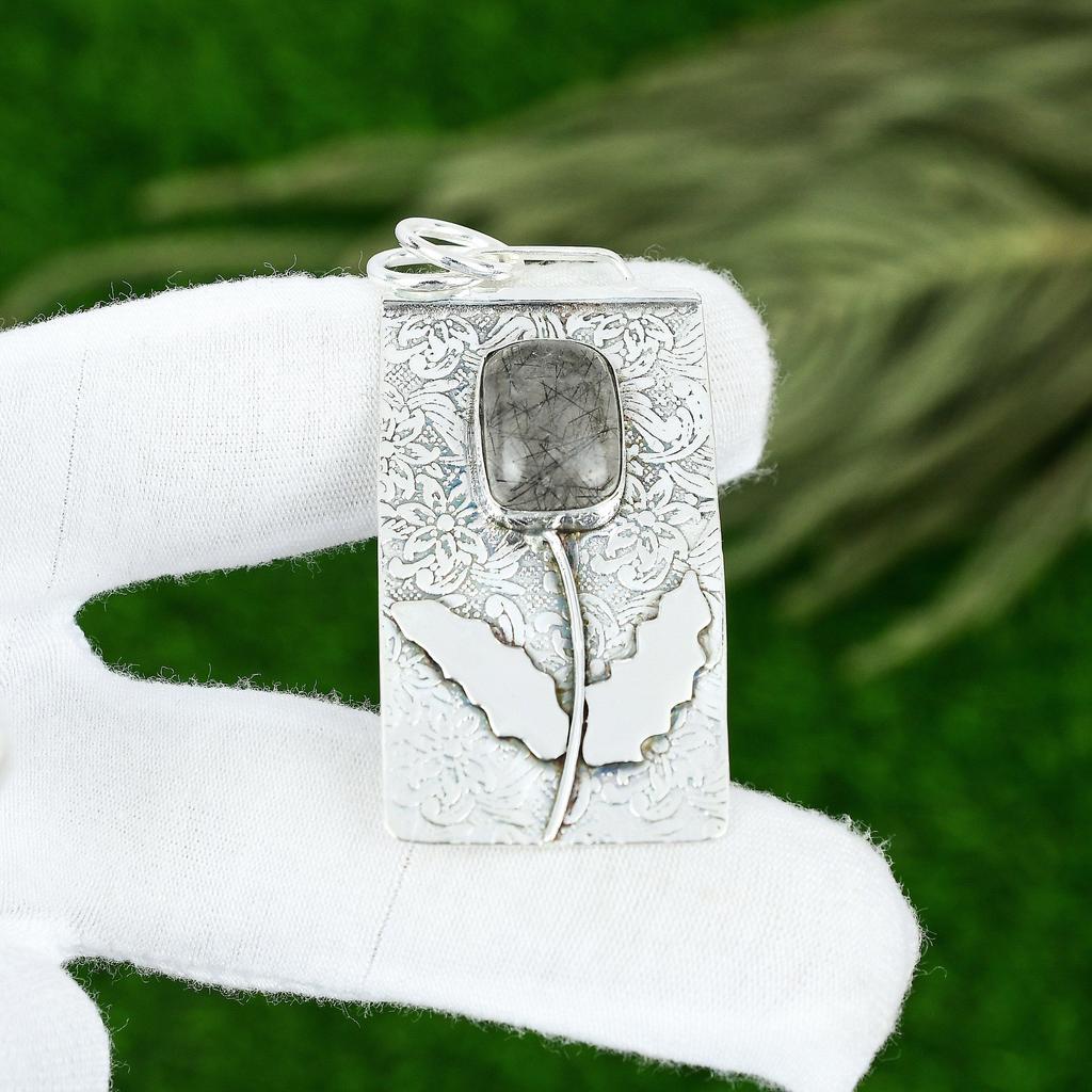 Сделка ко Дню дружбы Серебро 925 пробы Натуральный черный рутил Жена Кулон ручной работы