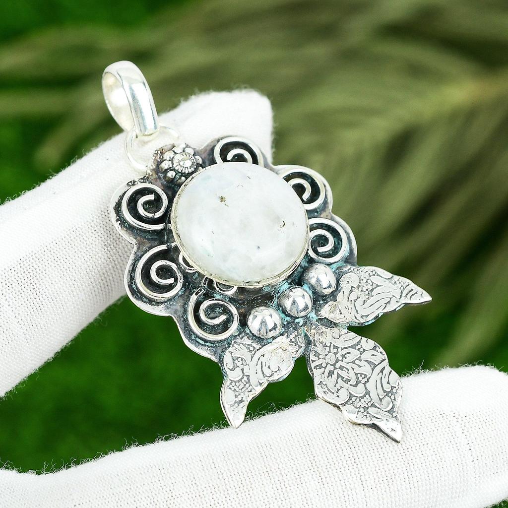 Sisters Day Deal Rainbow Moonstone Gemstone 925 Sterling Silver Bezel Pendant
