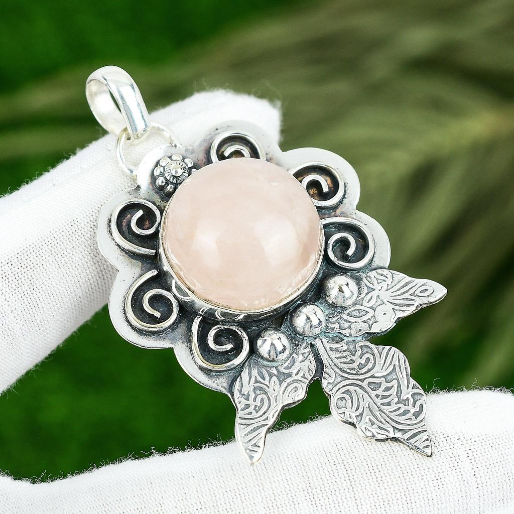 Sisters Day Deal Rose Quartz Stone 925 Sterling Silver Birthday Pendant Jewelry