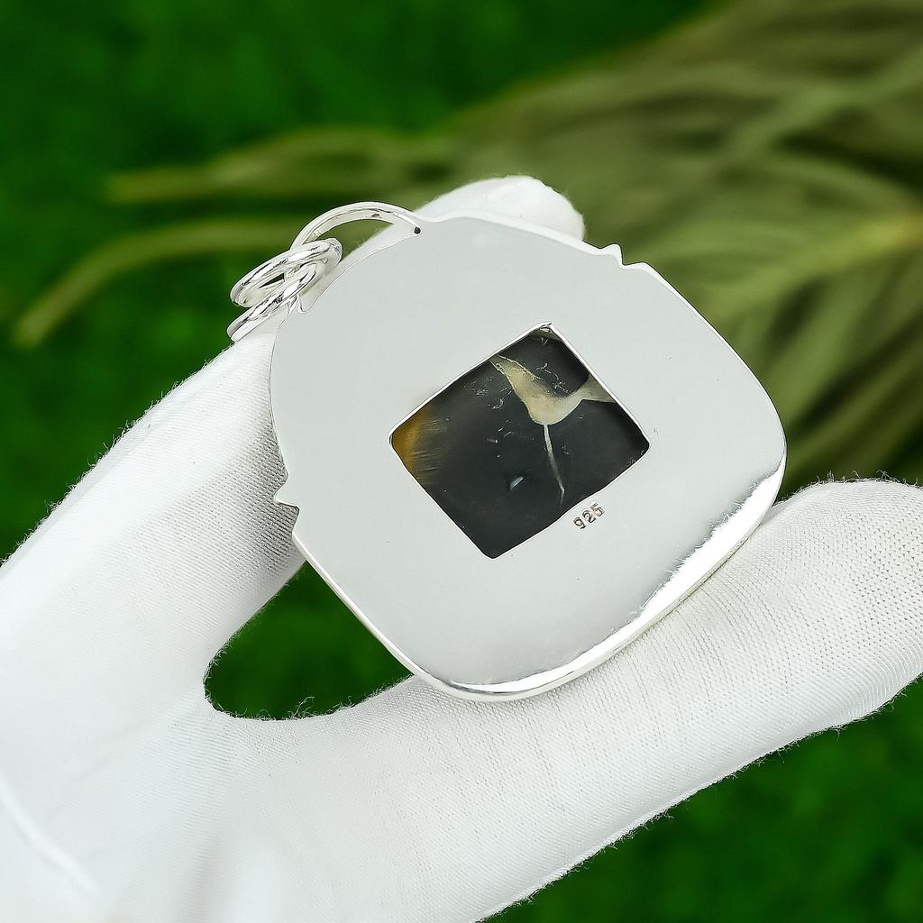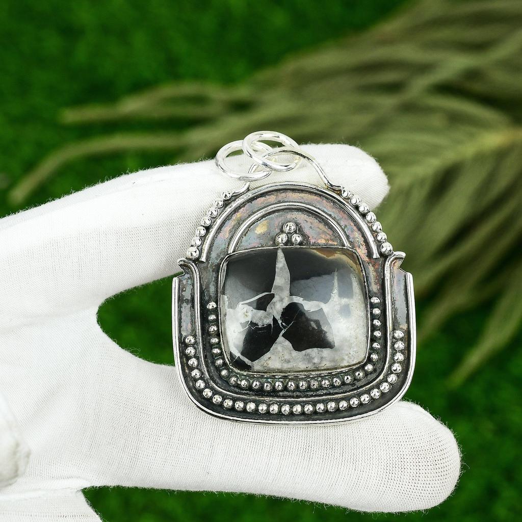 Daughters Day Sale Moroccan Mud Crack Fossil Stone Boho Pendant Sterling Silver