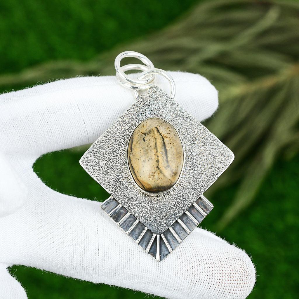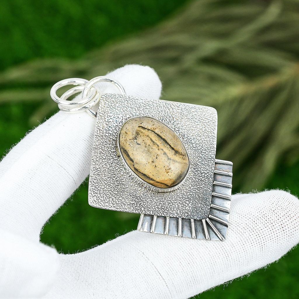 925 Sterling Silver Picture Jasper Gemstone Daughter Bezel Anniversary Pendant