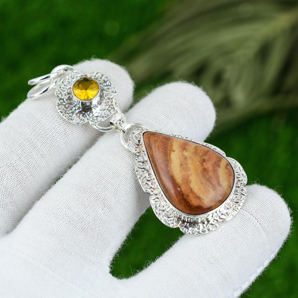 Natural Red Snake Skin Gemstone Pendant 925 Sterling Silver Indian Jewelry