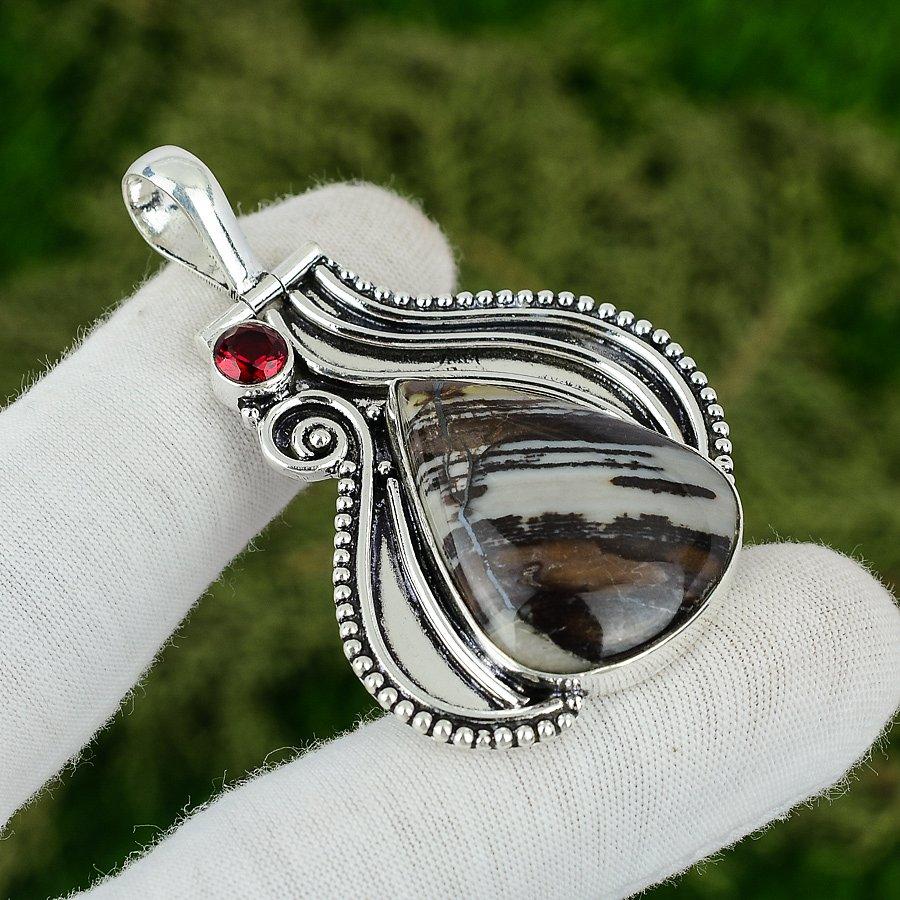 Свадебный подарок для нее Подвеска из натурального кокосового яшмового драгоценного камня из стерлингового серебра 925 пробы