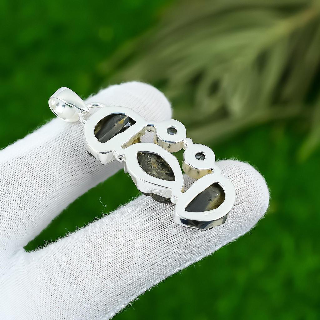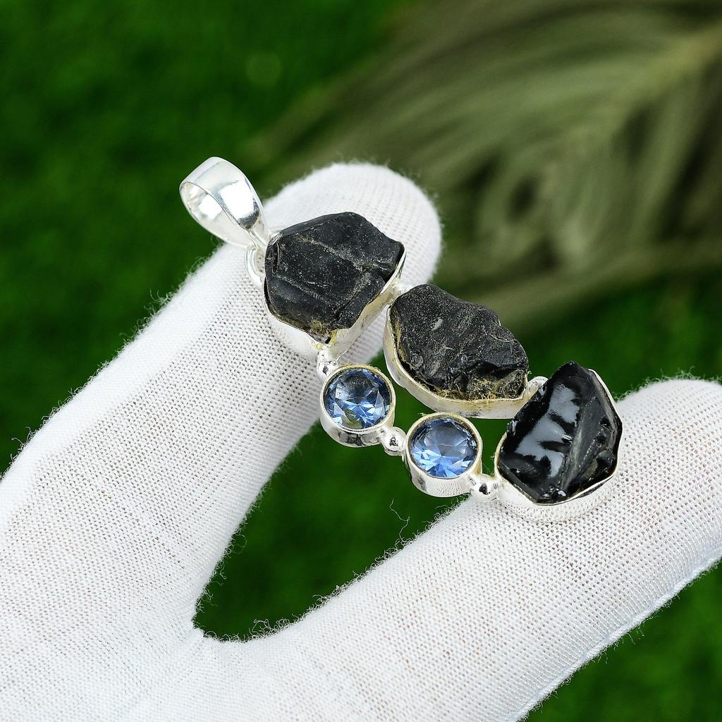 Подарок для нее Подвеска из серебра 925 пробы с натуральным черным кианитом, необработанным драгоценным камнем