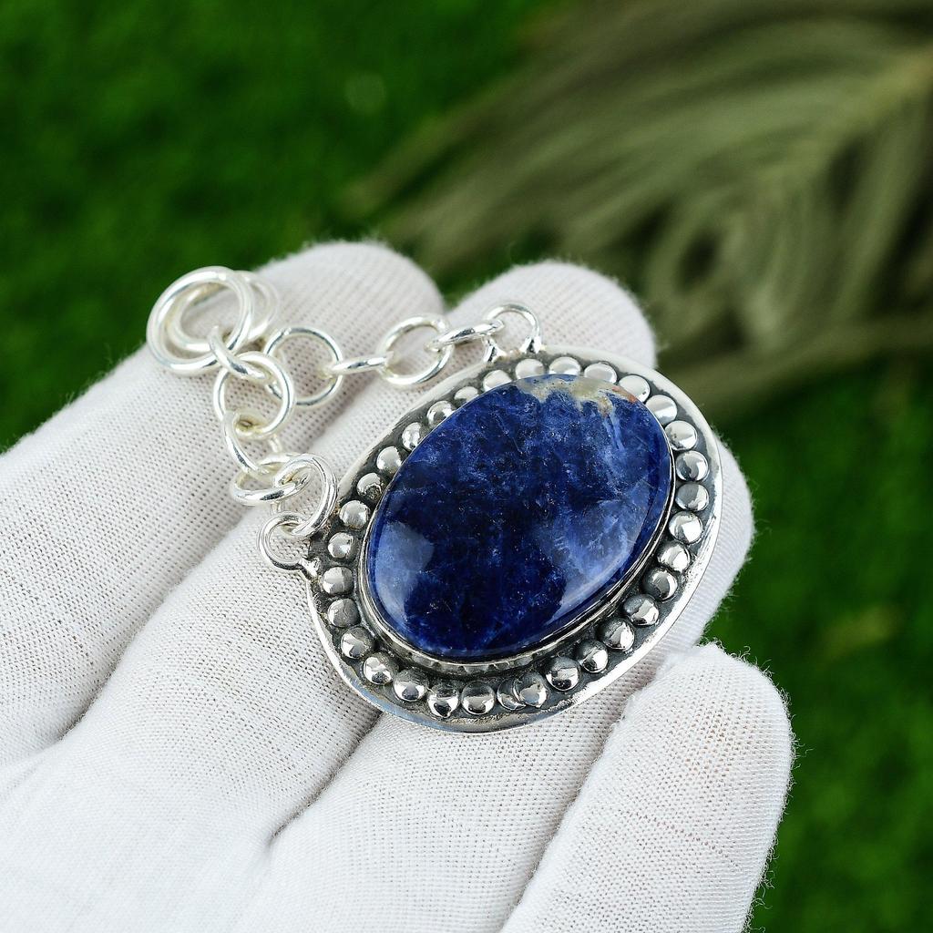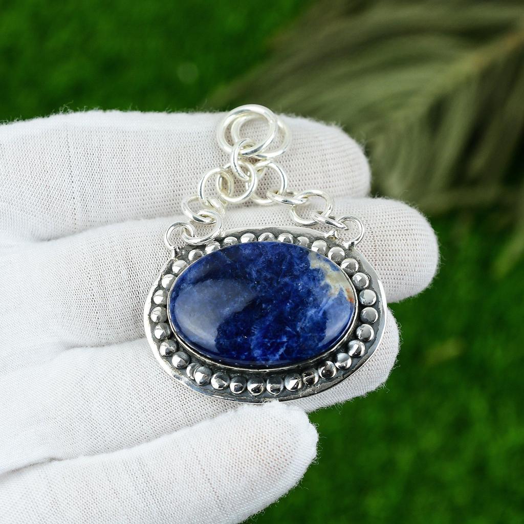 Подарок на день рождения для нее Подвеска из натурального содалита из стерлингового серебра 925 пробы