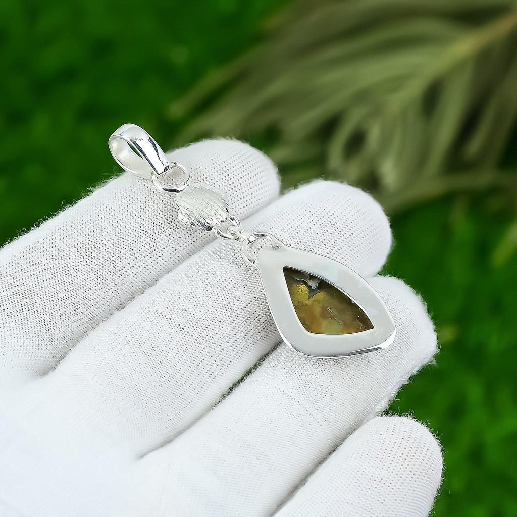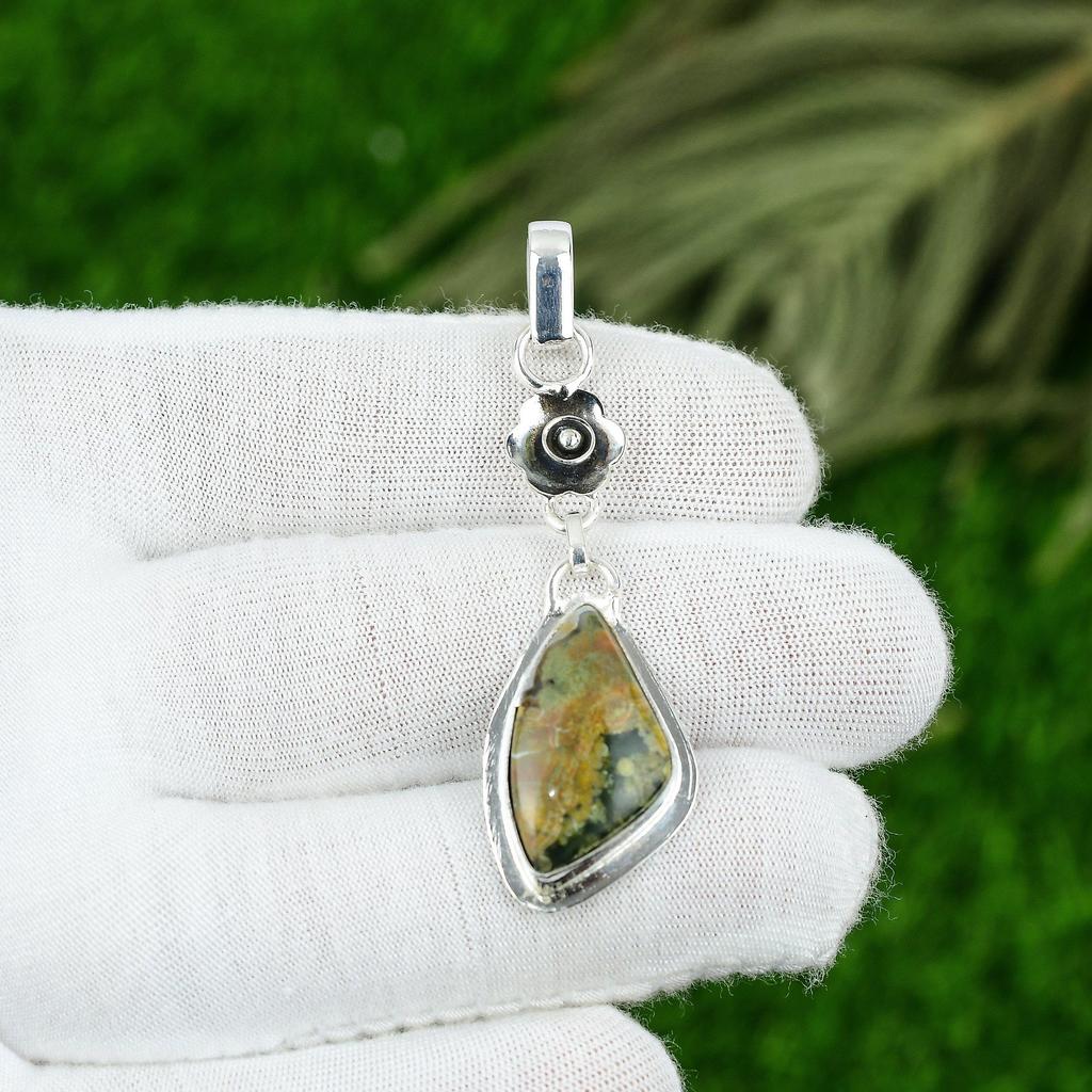 Подвеска из натурального океанического яшмового камня зеленого цвета из стерлингового серебра 925 пробы, индийские украшения