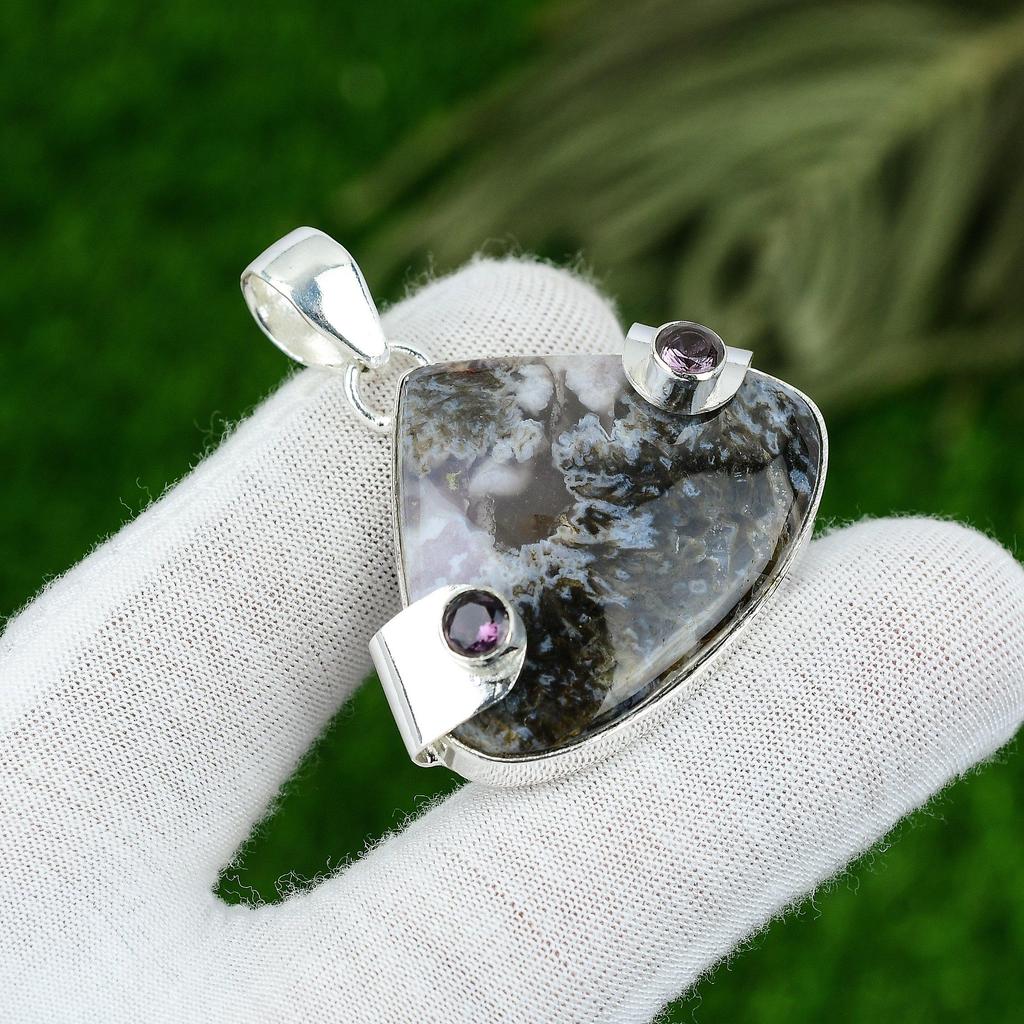 Сделка ко Дню матери Подвеска-безель из агата-палочки и аметиста из стерлингового серебра 925 пробы
