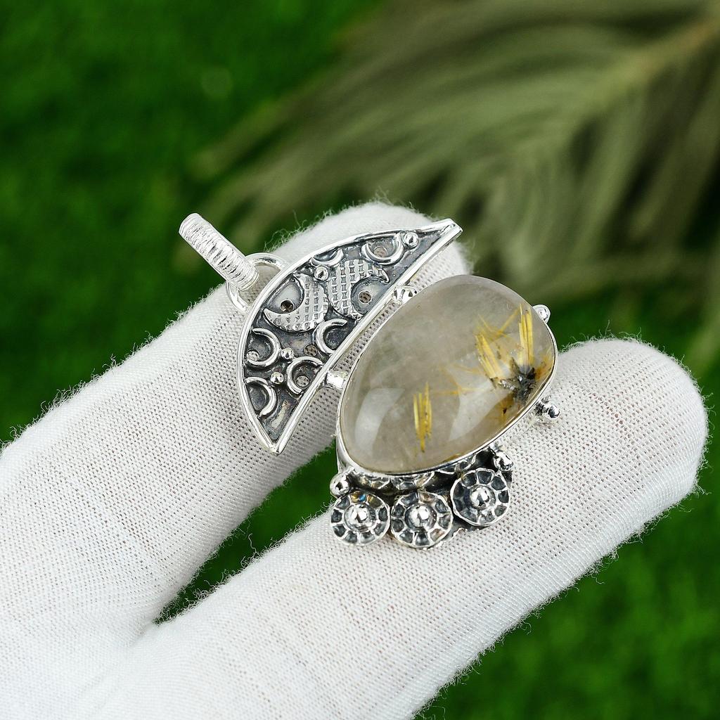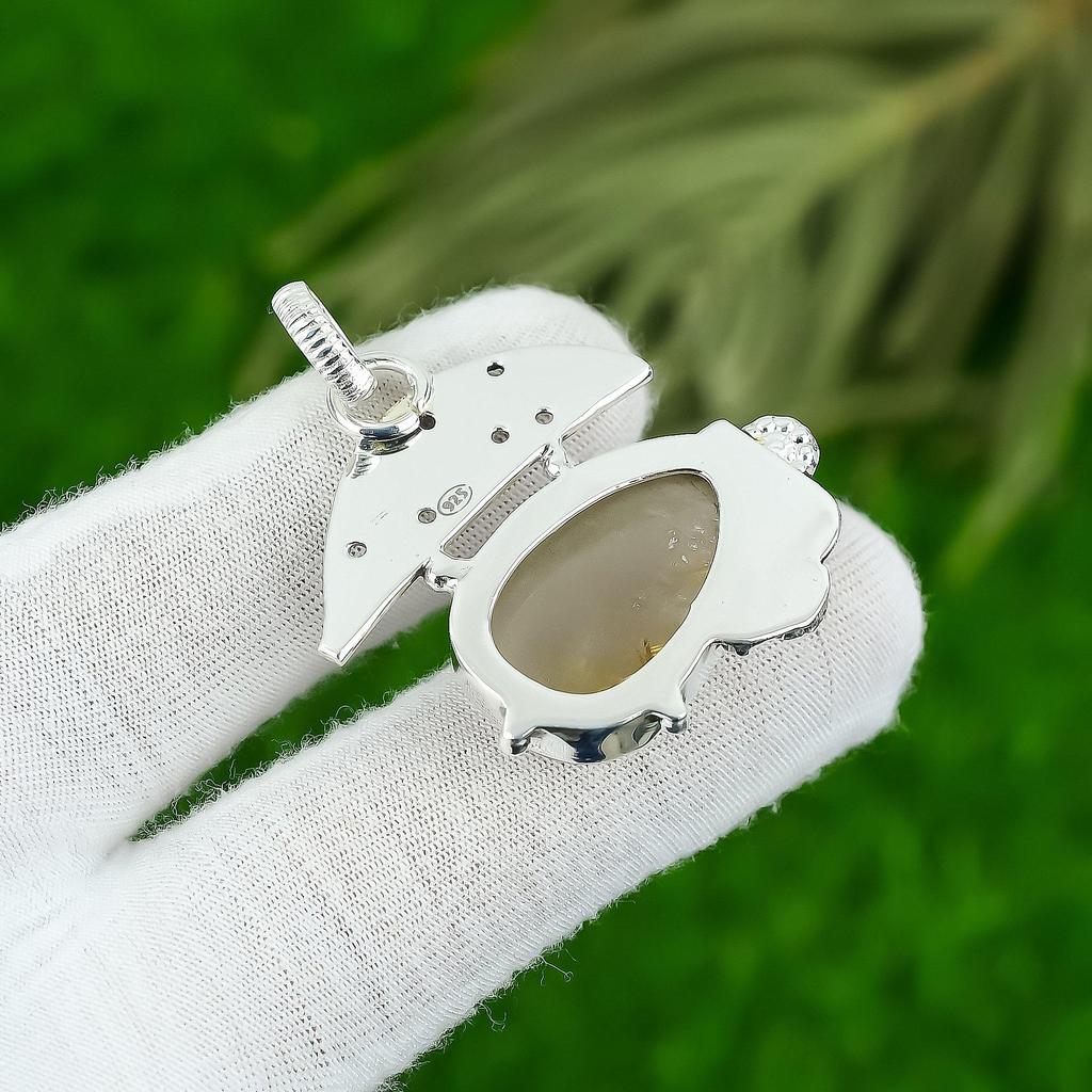 Sterling Silver Natural Golden Rutile Artisan Unique Wedding New Mother Pendant