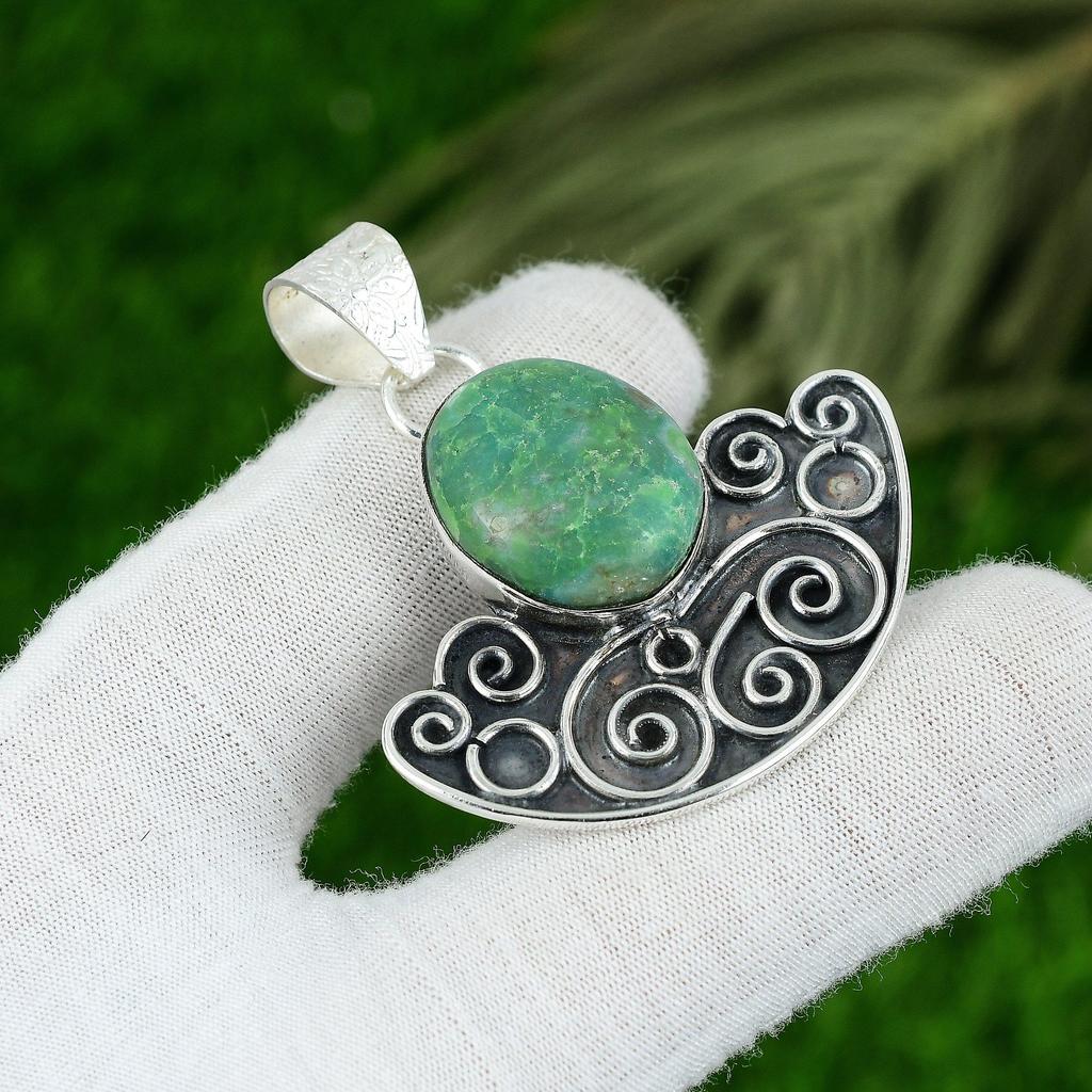 Кулон из стерлингового серебра 925 пробы, овальный, с натуральным хризопразом, ювелирное украшение для годовщины свадьбы