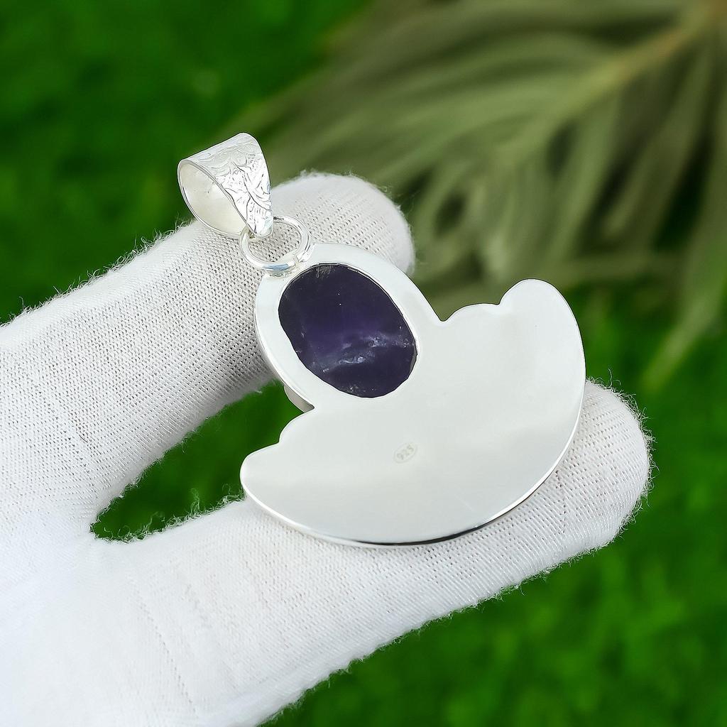 Oval Crown Chakra Chevron Amethyst Gemstone 925 Silver Birthday Pendant Jewelry