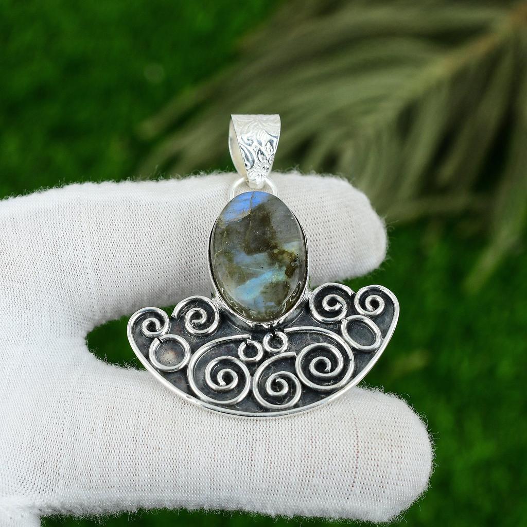 Кулон из стерлингового серебра 925 пробы с натуральным лабрадоритом, ручной работы, к годовщине