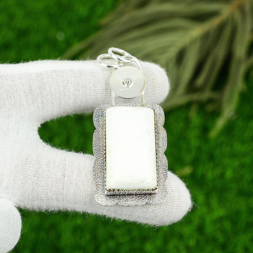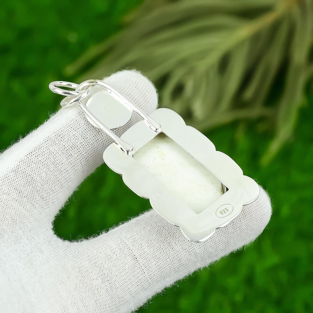 Серебро 925 пробы Прямоугольный камень Сколецит Чакра Короны Ручной работы Безель Подвеска для жены