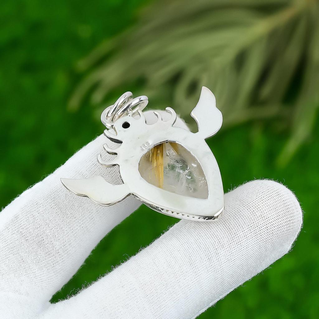 Daughters Day Sale 925 Sterling Silver Golden Rutile Stone Topaz Mother Pendant