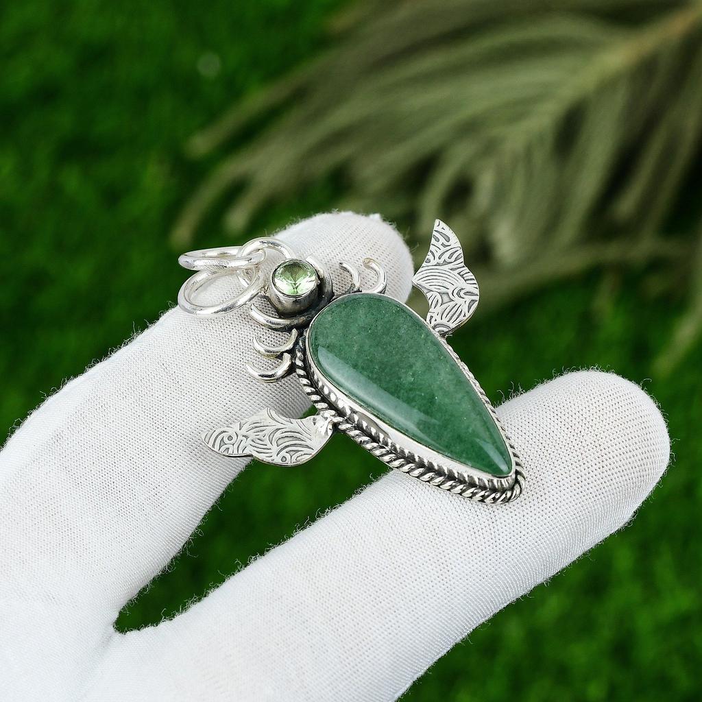 Серебро 925 пробы Камень Зеленый Авантюрин Цаворит Безель Подвеска для жены Ювелирные изделия — купить товар онлайн с бесплатной доставкой по всему миру!