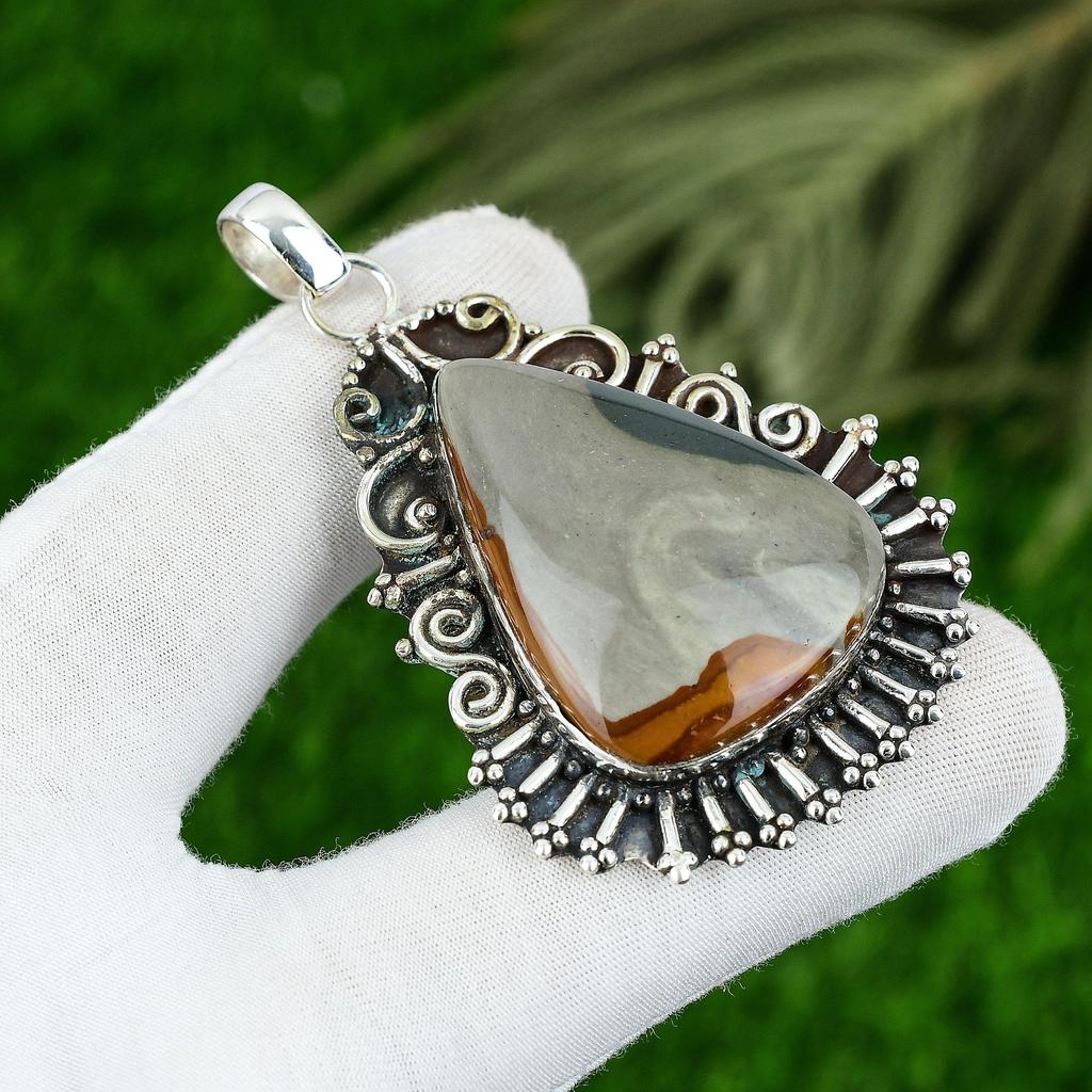 Серебро 925 пробы Груша Полихромная Яшма Камень Безель Свадебный Элегантный Подвеска для Жены — купить товар онлайн с бесплатной доставкой по всему миру!