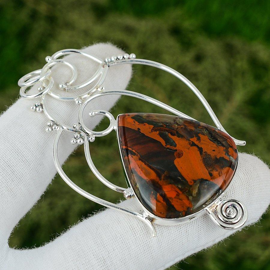 Mothers day Sale Pear Natural Red Snakeskin Jasper Pendant Jewelry 925 Silver