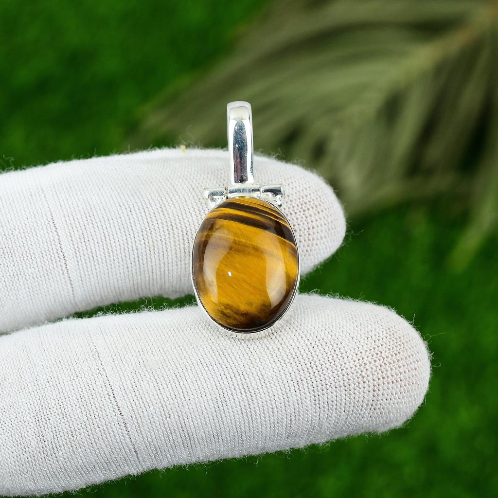 Natural Tiger Eye Gemstone Pendant Yellow 925 Sterling Silver Indian Jewelry