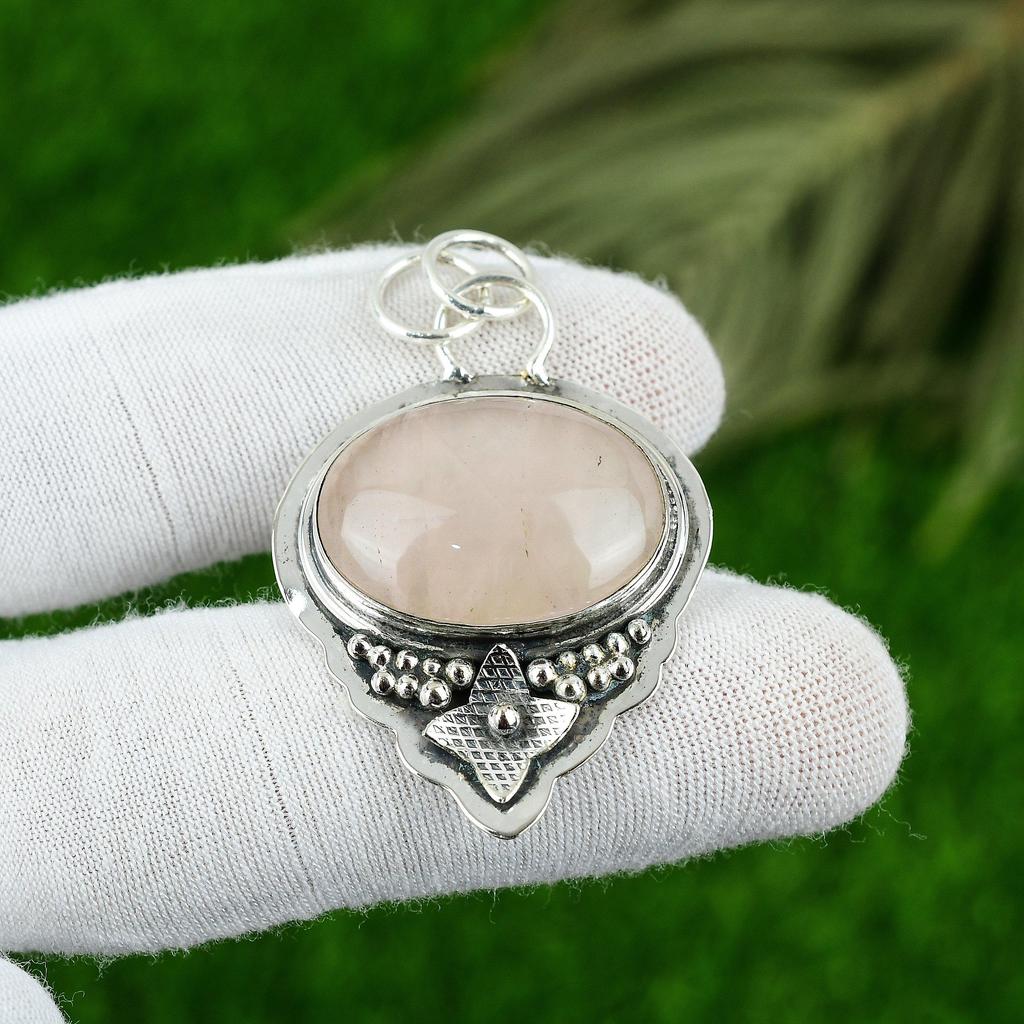 Подарок на годовщину для нее Подвеска из натурального розового кварца 925 серебро