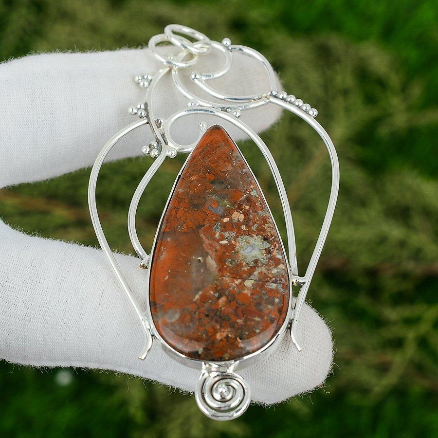 Easter Sale Red Snakeskin Jasper Stone Anniversary Artisan Pendant 925 Silver