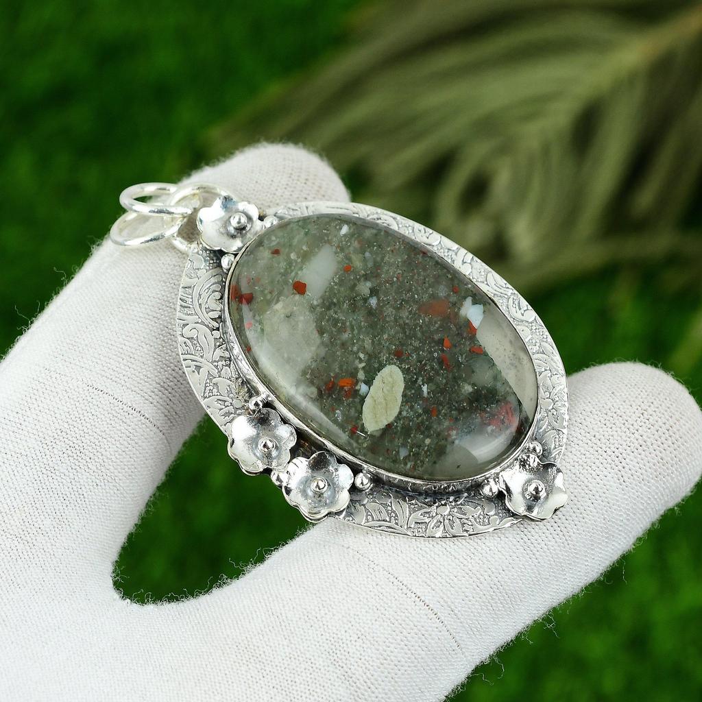Натуральный кулон из камня яшмы табу, ручной работы, из стерлингового серебра 925 пробы, индийские украшения