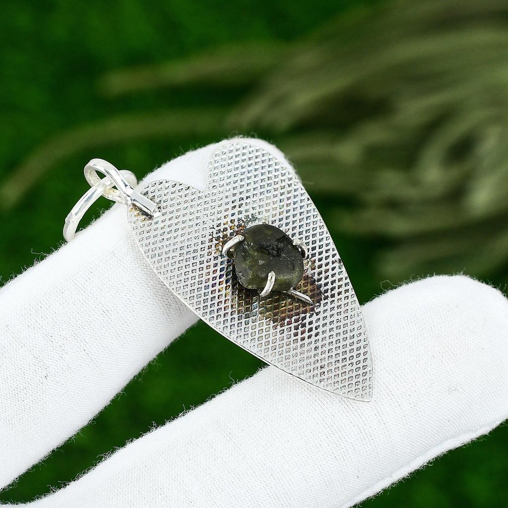 Friendship Day Sale Natural Moldavite Quartz Rough 925 Silver Pendant Jewelry
