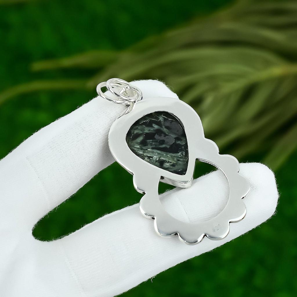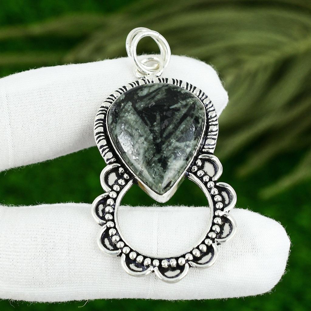 Easter Sale Sterling Silver Pear Star Galaxy Stone Bezel Ethnic Handmade Pendant