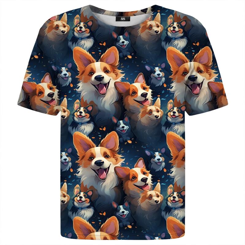 Уличный стиль Харадзюку, мужские повседневные футболки с мультяшным принтом, смешные аниме-псы, 3D-принт, корги, кэжуал