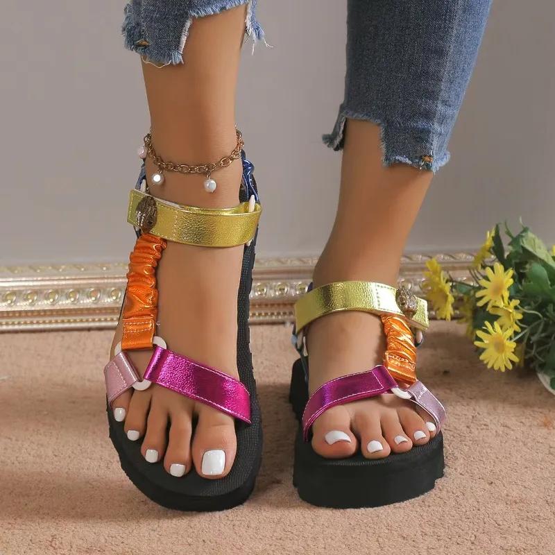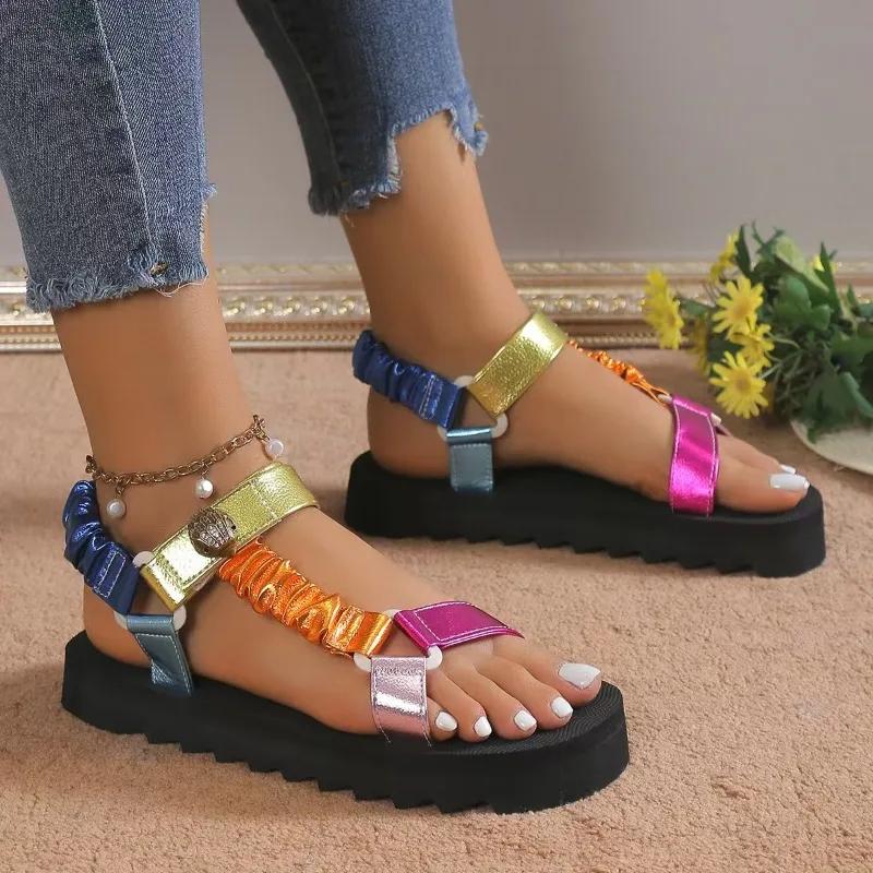 2025 Новые летние уличные пляжные повседневные сандалии Модные женские сандалии Цвет Плоские Повседневные Легкие туфли для дам Zapatillas Mujer
