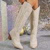Зимние Ботильоны с Острым Носком на Высоком Блочном Каблуке, Большого Размера, Рыцарские Сапоги 2024, Модная Обувь для Женщин, Сапоги-чулки для Женщин, Botas De Mujer