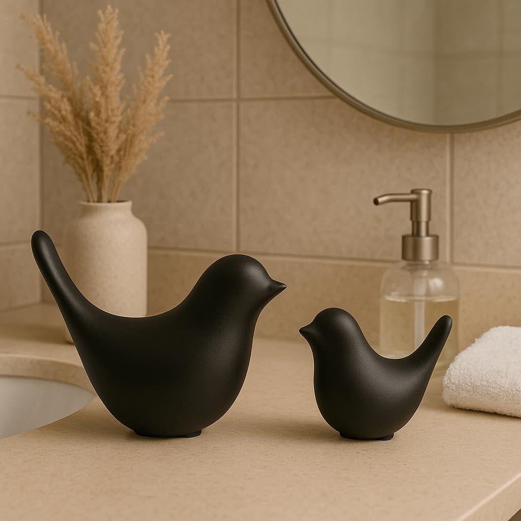 Creative Black Birds Matte Figurines Home Decorations Accessories (Pack of 2, Black)