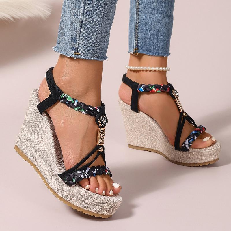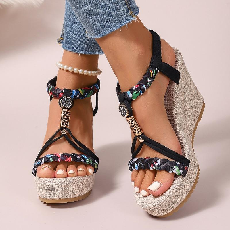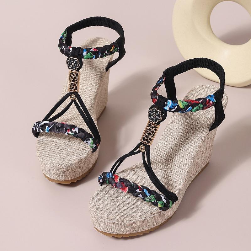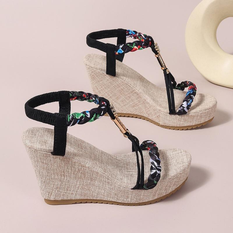 2025 Летние Женские Легкие Босоножки на Танкетке Новая Горячая Распродажа Платформа Открытый Носок Эластичная Лента Задний Ремешок Слингбэк Бохо Обувь Сандалии
