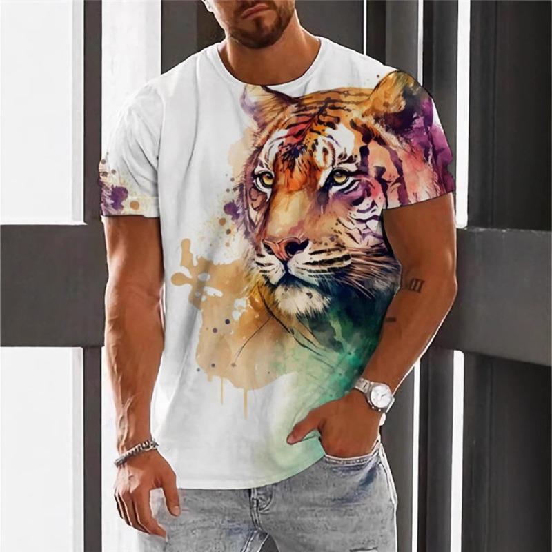 Мужская футболка с коротким рукавом с 3D цифровой печатью животного тигра