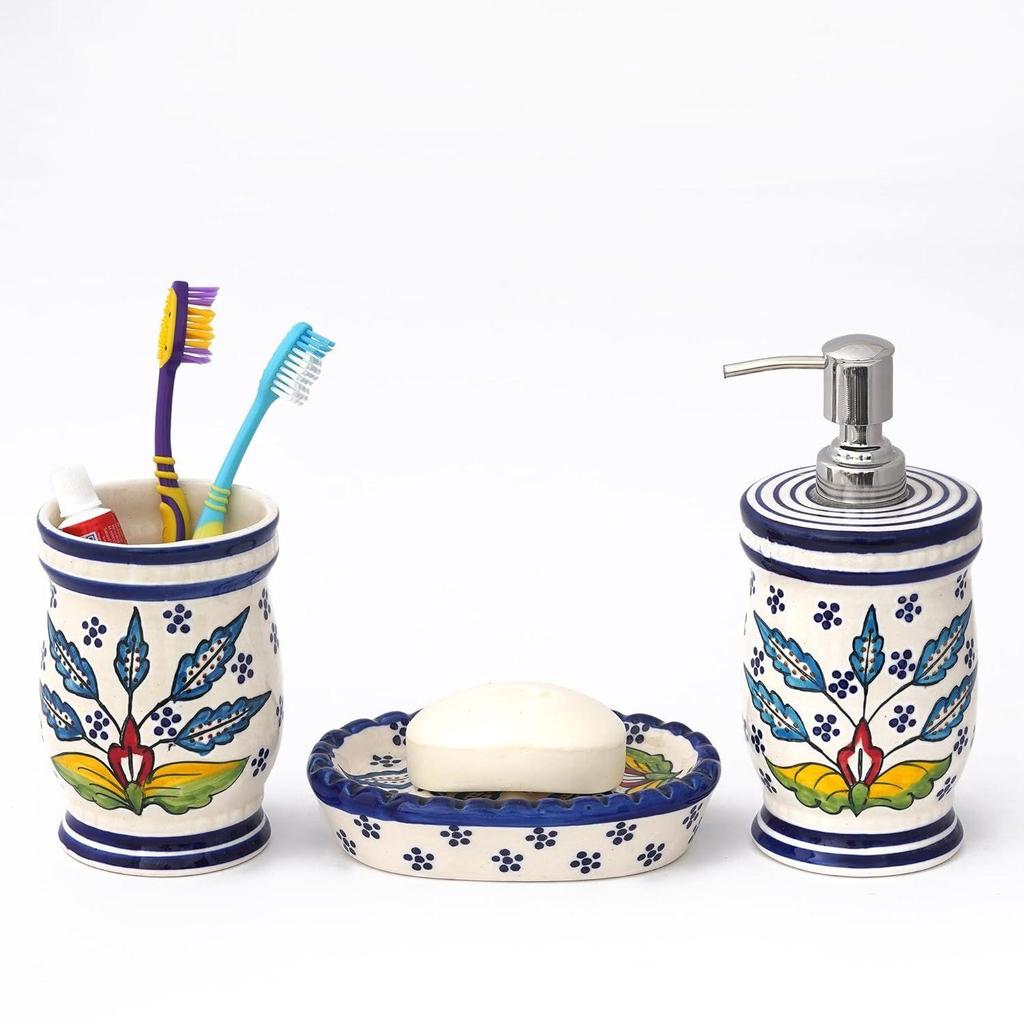 Сделано в Индии - Премиальное мастерство - Этот высококачественный керамический набор для ванной, искусно изготовленный в Индии, имеет ручную-
