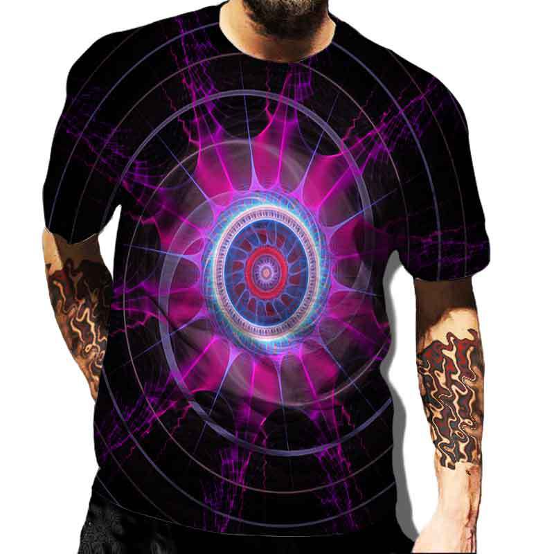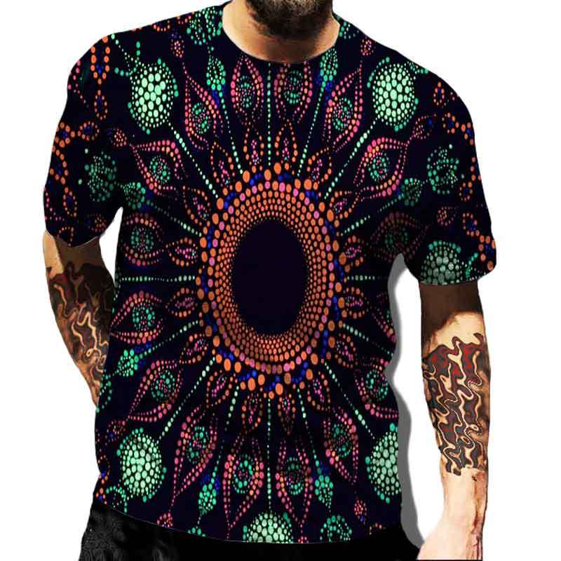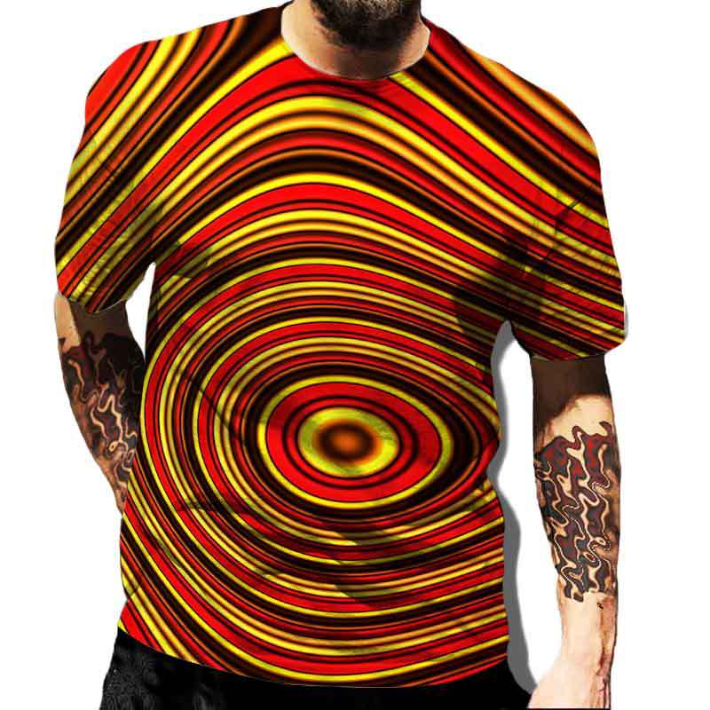 Геометрическая форма Креативный дизайн Цветной вихрь 3D-принт Футболка Повседневная уличная мужская футболка