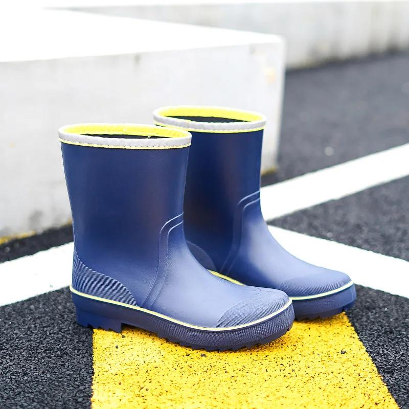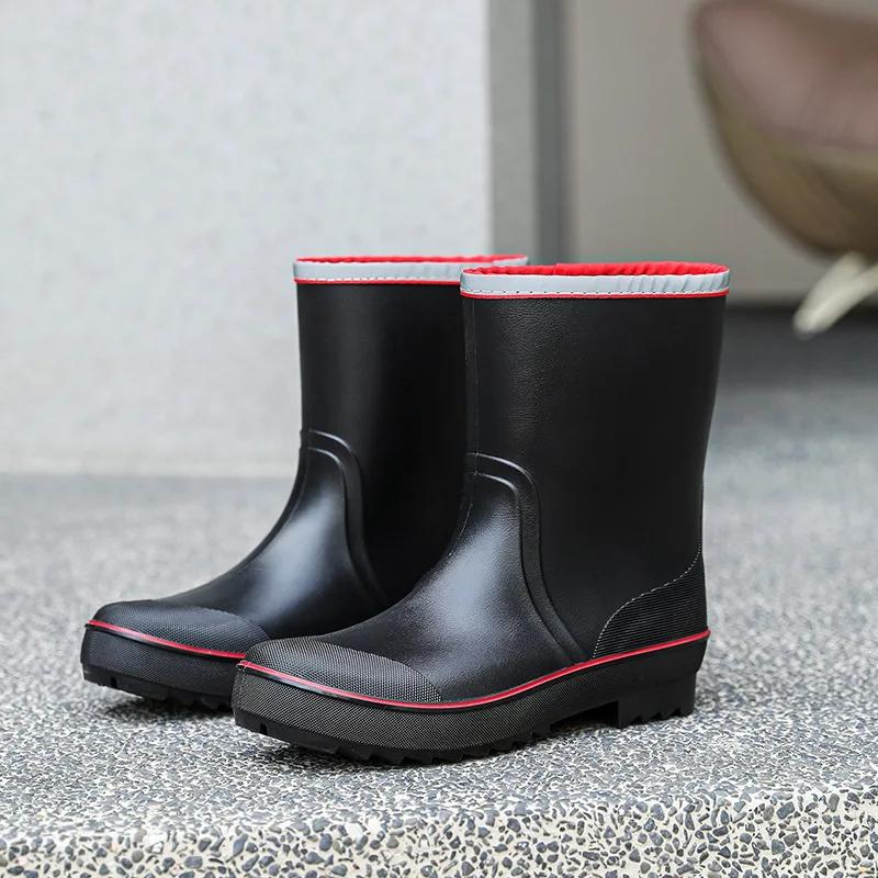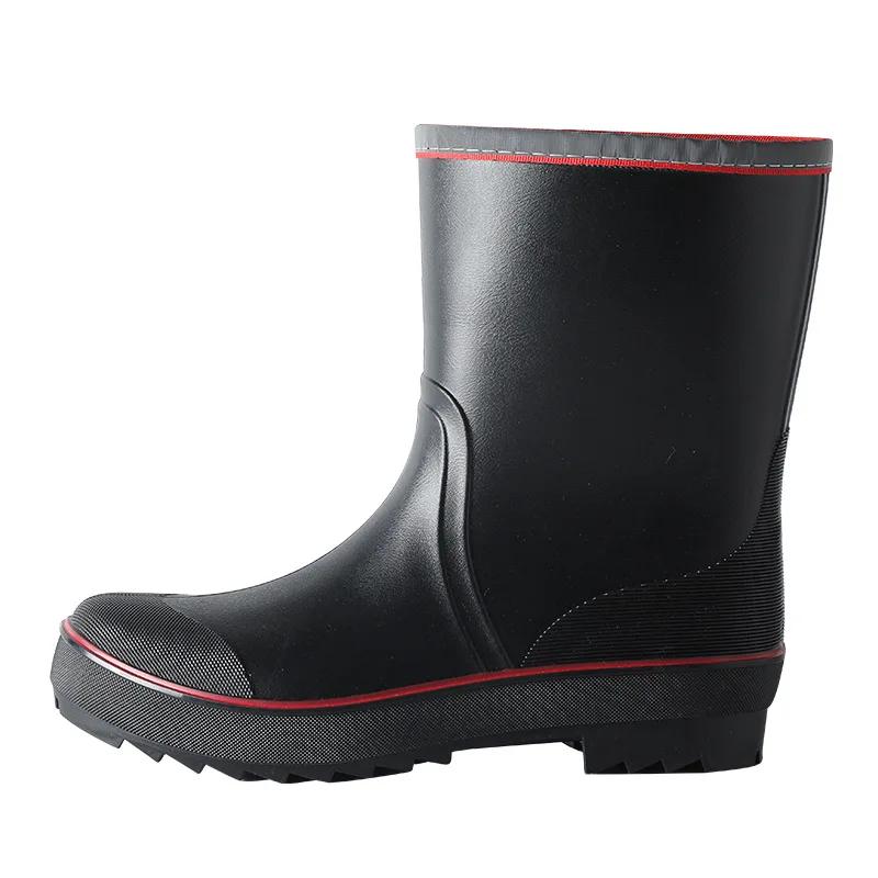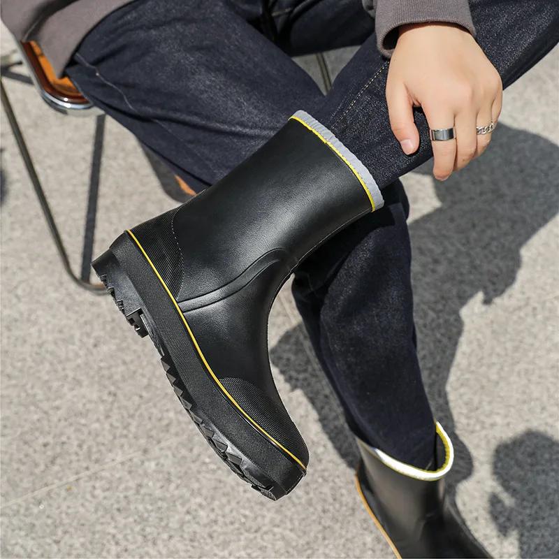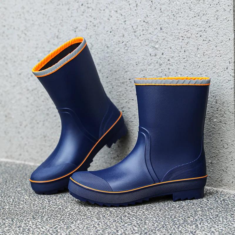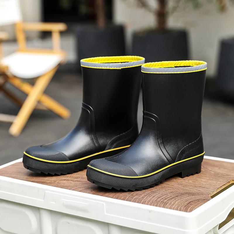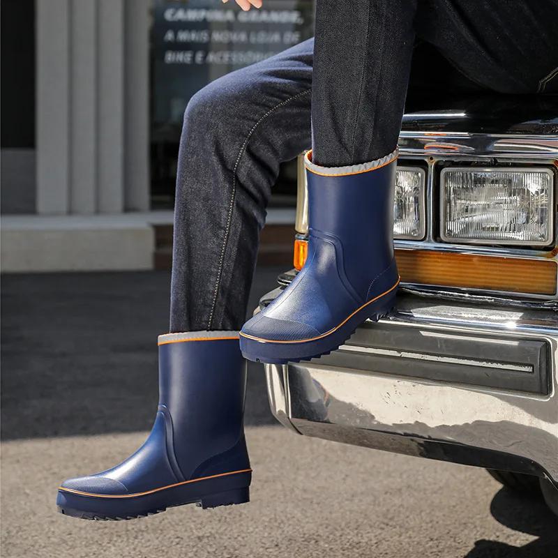 Мужские резиновые дождевые ботинки 2024 года, противоскользящие, водонепроницаемые рыболовные ботинки с плюшевой теплой подкладкой, мужские повседневные ботинки до середины голени, рабочие ботинки больших размеров 45