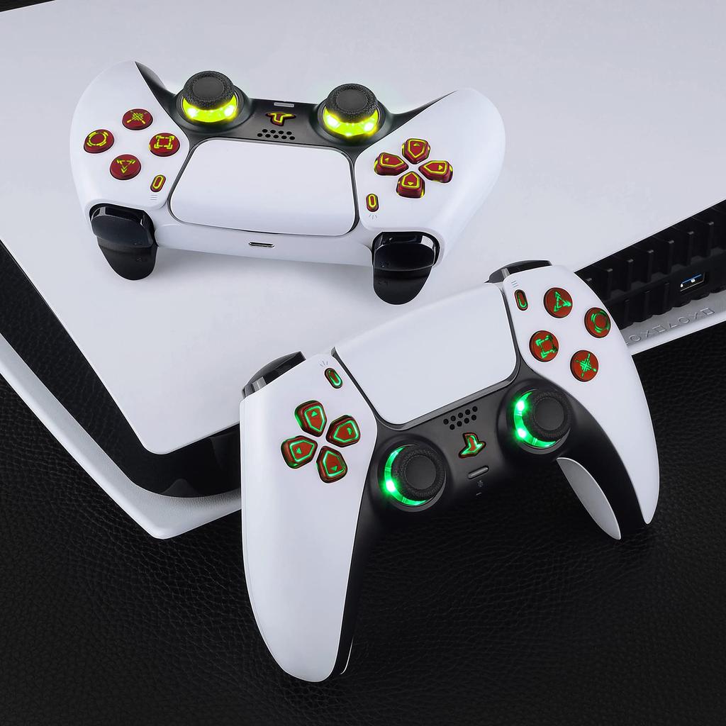 Совместим с набором Clicky Trigger от eXtremeRate, набором Face Clicky, Hole Clicky и комплектом для переназначения RISE & RISE 4 для контроллера PS5. (При объединении этих наборов, пожалуйста, обратитесь к инструкциям по установке: установите сначала Clicky Kit, затем DTF LED Kit и, наконец, Remap Kit.)