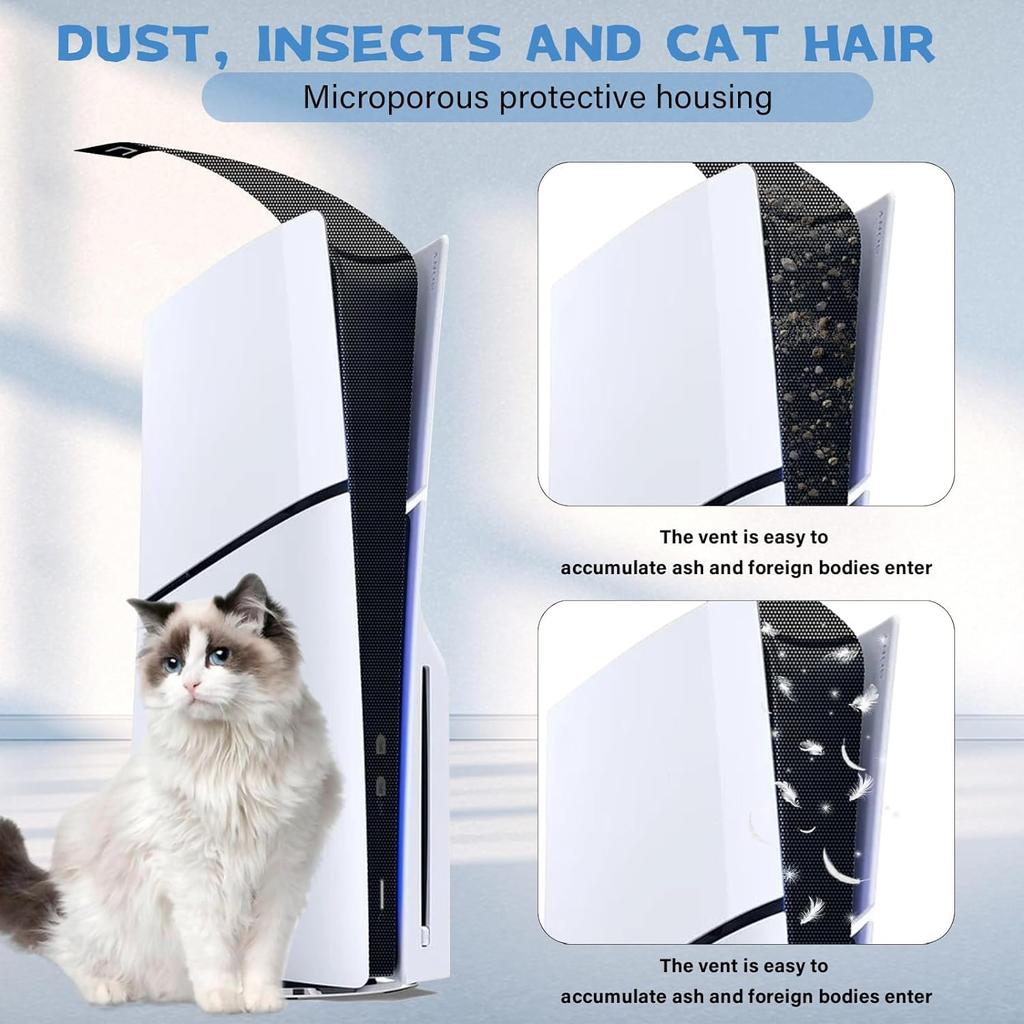 2. Функция защиты от пыли: Пылезащитная сетка состоит из плотно расположенных ячеек, которые эффективно предотвращают попадание пыли внутрь консоли PS5, поддерживая функцию воздухозабора PS-консоли и не препятствуя эффективности рассеивания тепла PS5.