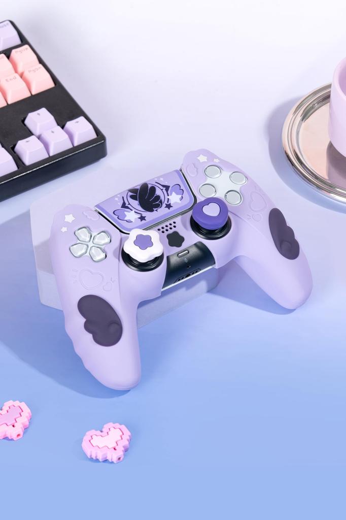 GeekShare PS5 Controller Silicone Soft Skin Case for PlayStation 5 Includes Protective Easy to Star Purple Cover, Controllers, Sticker, Shockproof,