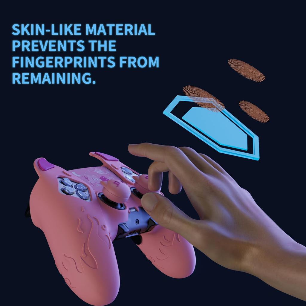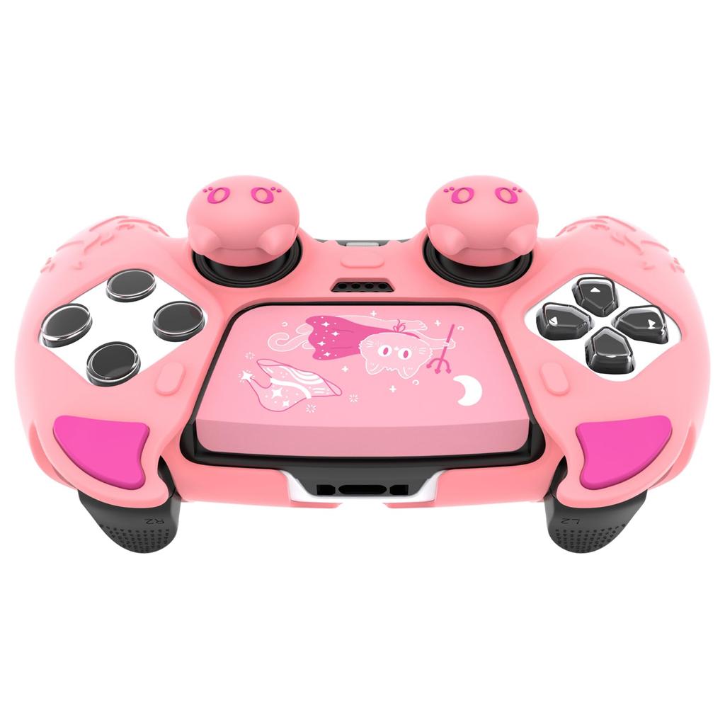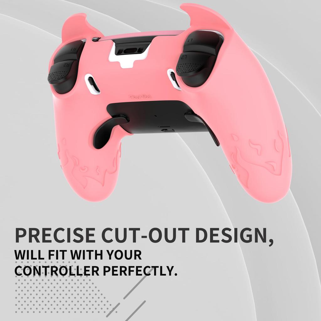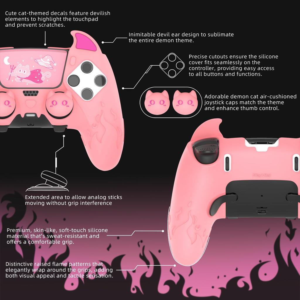 PlayVital Silicone Cover for PS5 Edge Cute Devil Protective Case for Includes Touchpad Sticker Stick Pink Controller, Design, Edge, & Cover,
