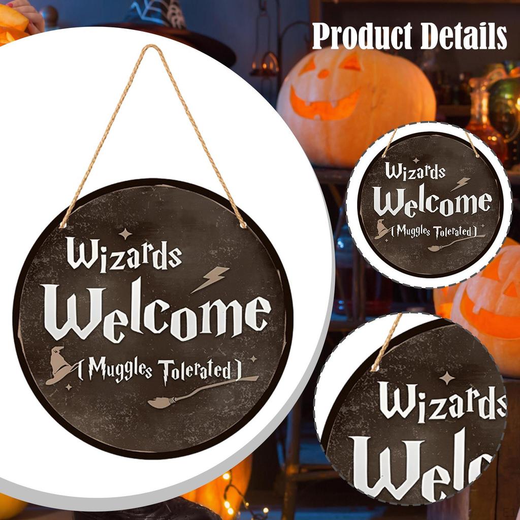 Wood Halloween Wizards Welcome Sign Rope Included Clear Printing Wall Plaque
